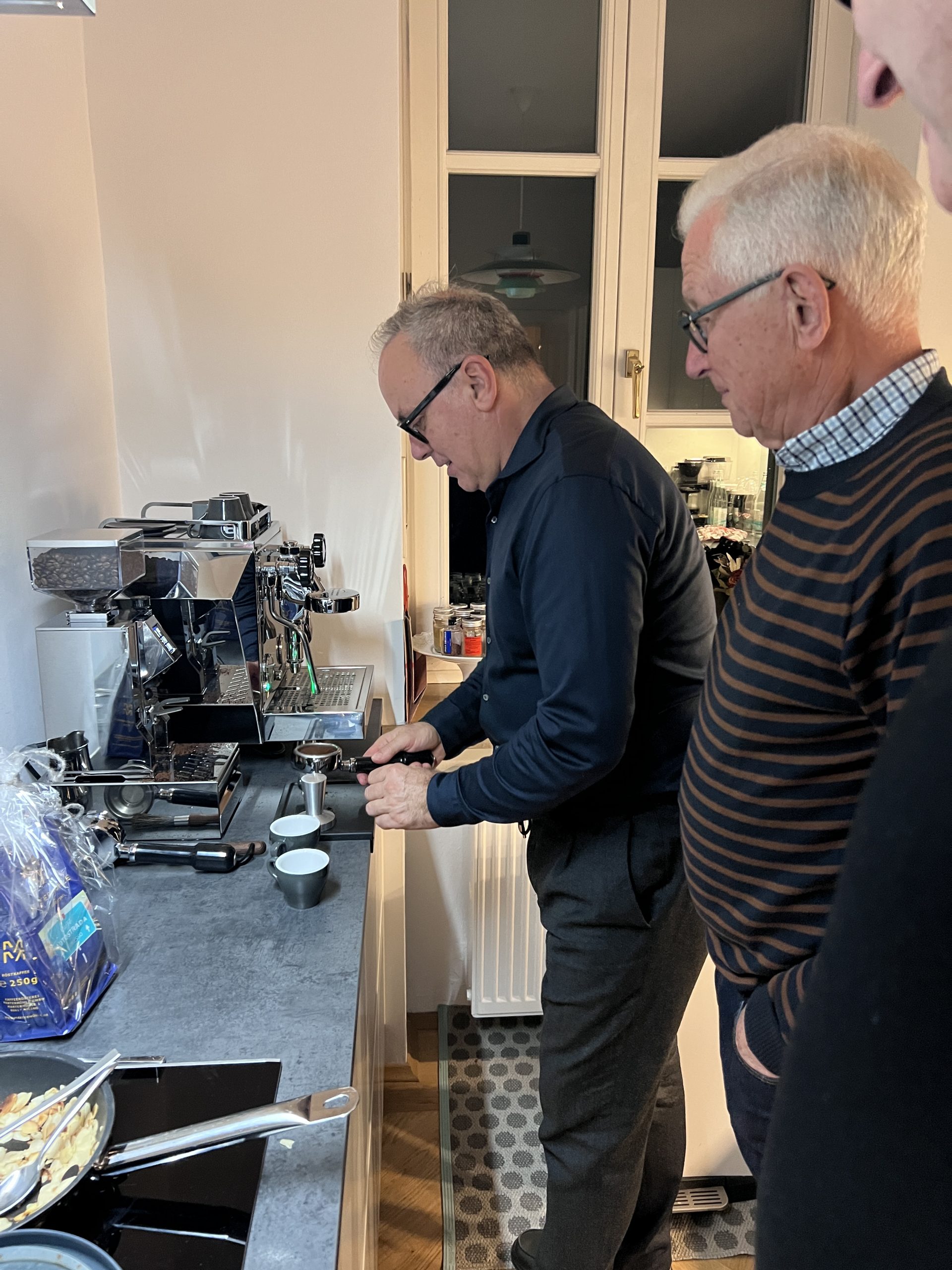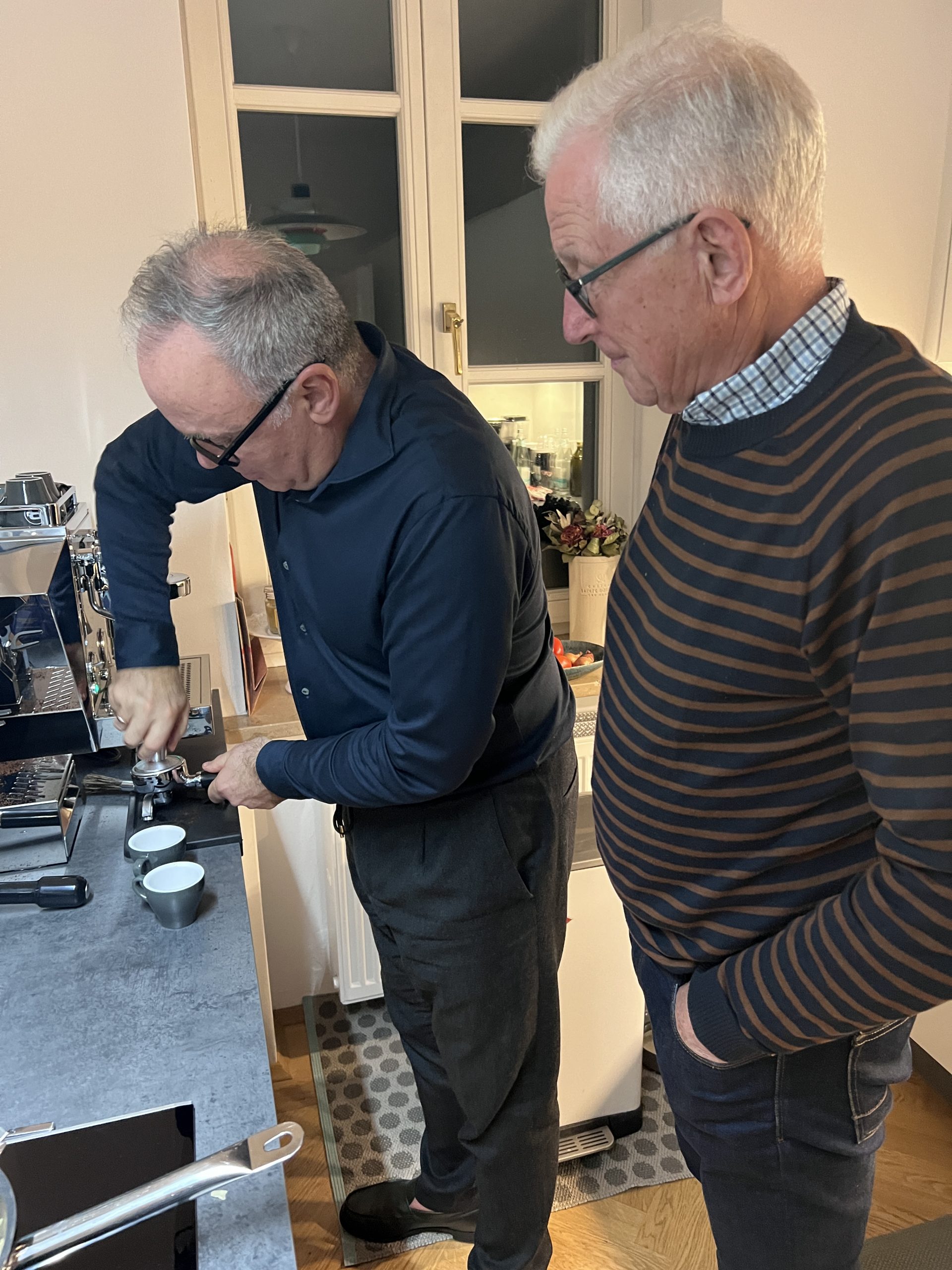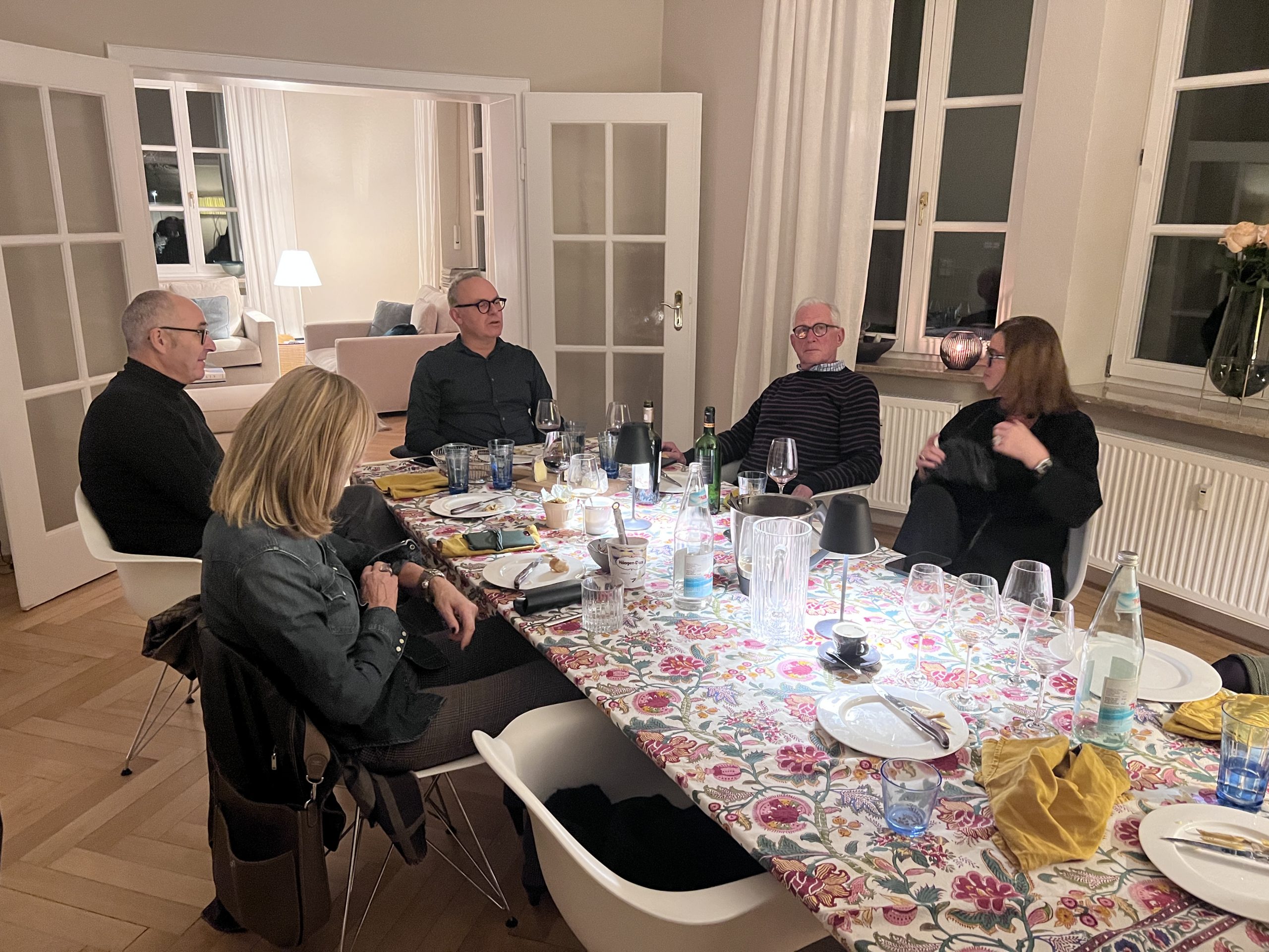 Bereits am 9. November des Vorjahres hatte Pascal seine erste Pasta Abend Einladung durch die eigens gegründete WhatsApp Gruppe "Spaghetti Bolognese" an Johanna und Karl Rheinheimer sowie Annette und mich versandt. Erst zwei Monate später konnte der gute Vorsatz gemeinsam mit Nani und Jürgen Schunda in einen konkreten Achtergruppen Event umgesetzt werden. Die Verzögerungen durch die Absagen bei den vorgeschlagenen Terminen waren vielschichtig. Einmal war es durch Ette und ihre berufliche Abwesenheiten in Milano begründet, dann durch Aufenthalte von Johanna und Karl in Kirchdorf sowie durch Home Runs von Tom Brady im Spiel der Seattle Seahawks gegen die Tampa Buccaneers in der Allianz Arena. Mittlerweile war Weihnachten und Silvester bereits Geschichte und wir trafen uns zum Ende der ersten Woche im neuen Jahr in Andrea und Pascals schöner Wohnung in der Aiblinger Strasse. Dieser wunderbare Abend wurde dann durch ein neues technisches Wunderwerk in der Küche optimal bereichert. Andrea und Pascals Küche war durchs Christkind zwischenzeitlich mit einer brandneuen Zweikreis Espressomaschine der italienischen Marke Rocket bestückt, der an diesem Abend größte Aufmerksamkeit sicher war. Mehrere von Pascal und auch mir selbst angefertigte Espresso Varianten wurden getestet, wodurch sichergestellt war, daß wir erst um 3 Uhr nachts in Bett gingen, da wir bis dahin hellwach waren. Das Abendessen mit Flusskrebs-Avocado Salat, köstlichen Spaghetti Bolognese, einer süßen Birne Helene und einem herzhaften Käse war - wie immer bei Pascal - sowieso ausgezeichnet. Der Wein war es sicher auch ... auf den musste ich jedoch leider verzichten 👍