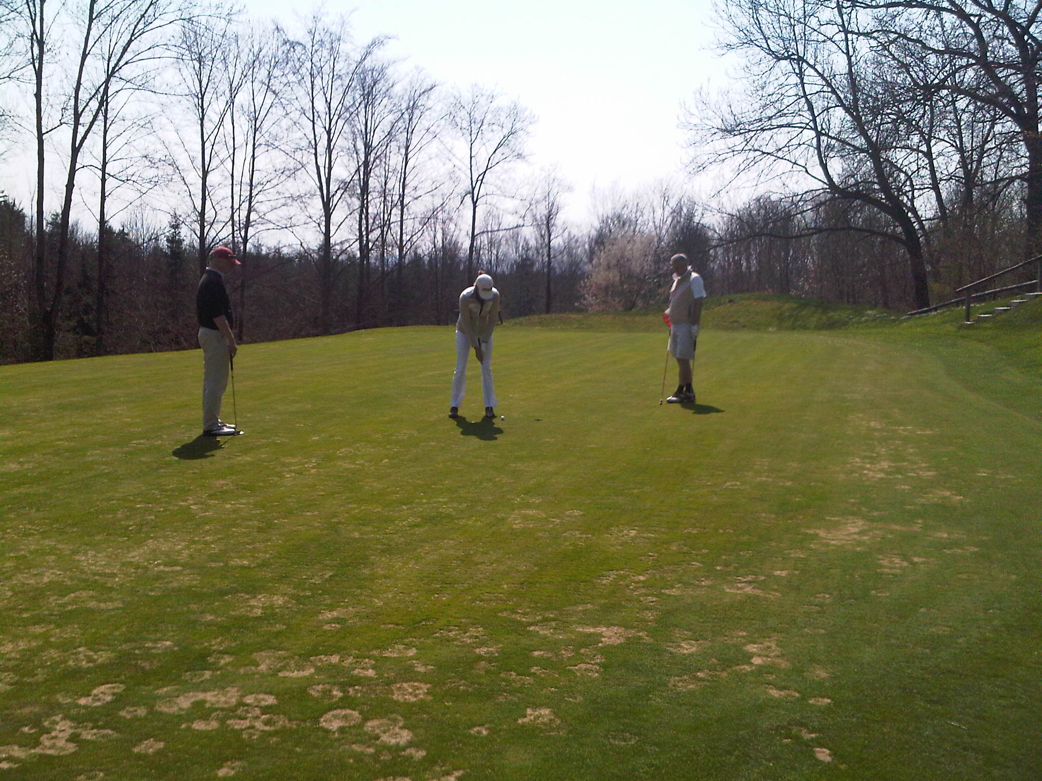 Und schon sind wir auf dem Grün des Dreierlochs nach der 17. Bahn .... noch einmal den Berg hoch und die Runde ist geschafft