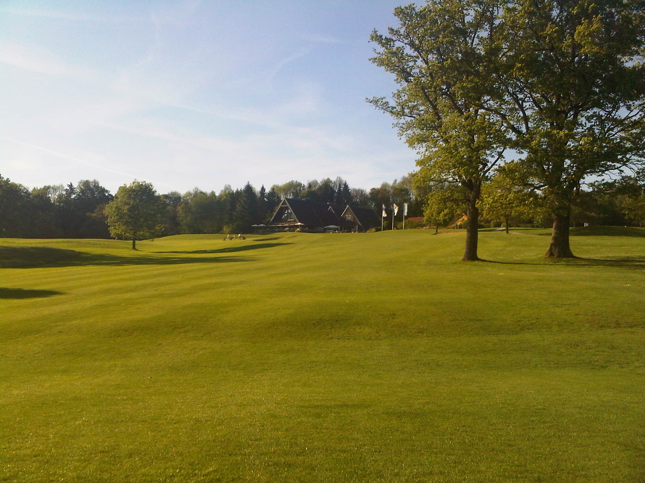 Auf dieser Höhe sollte der Abschlag liegen ... allerdings gut 25 Meter weiter links, sonst wird der zweite Schlag wegen der Baumreihe in der Regel ein Rohrkrepierer