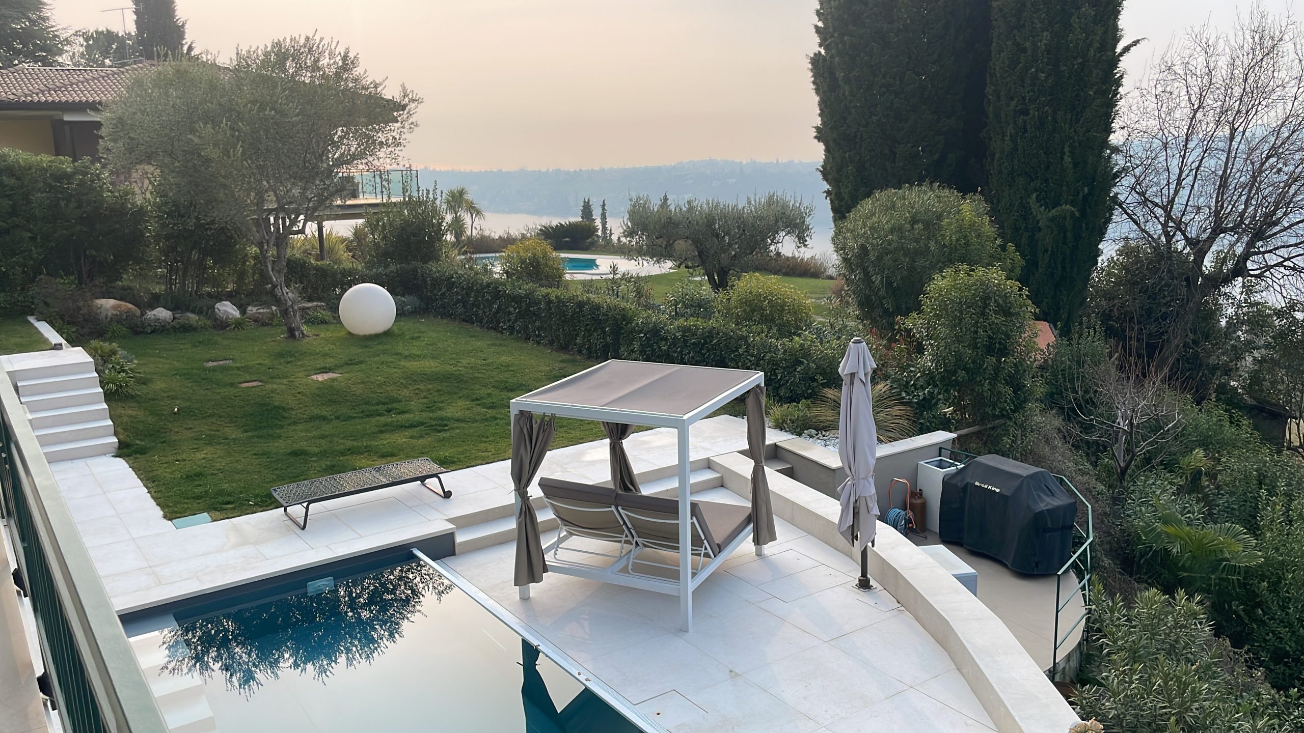 Der Blick vom Balkon von Sanne - die Anna-Lena und Kevin zu Gast hat - auf Salò und das auf der anderen Seite der Bucht liegende San Felice