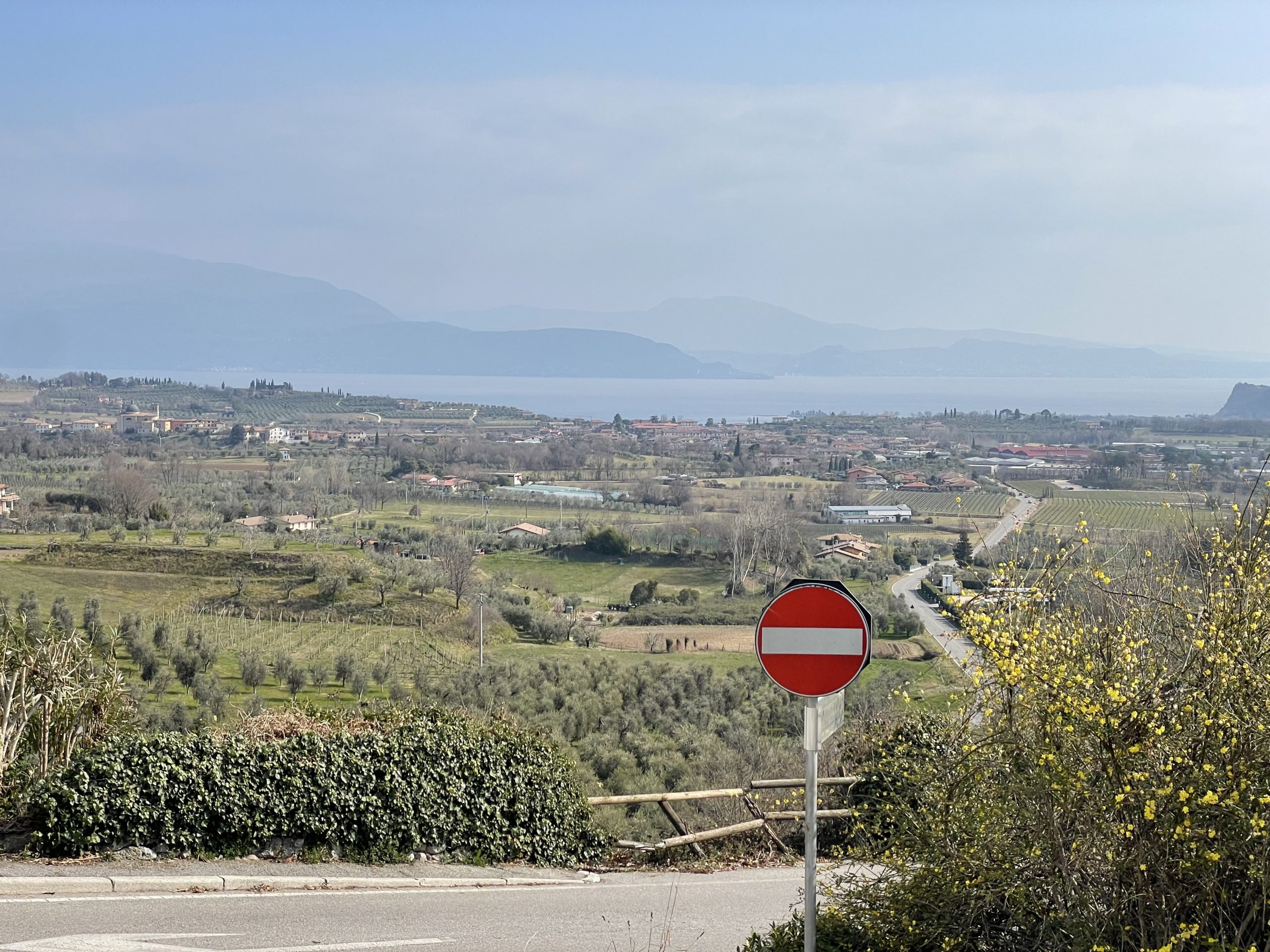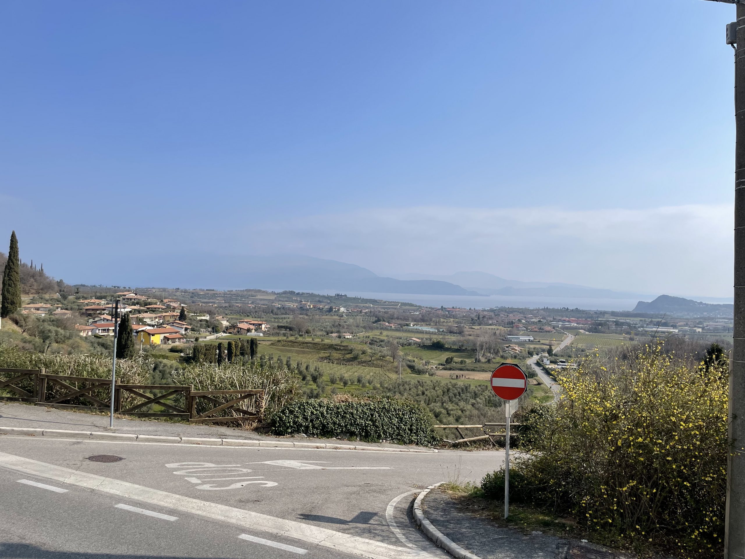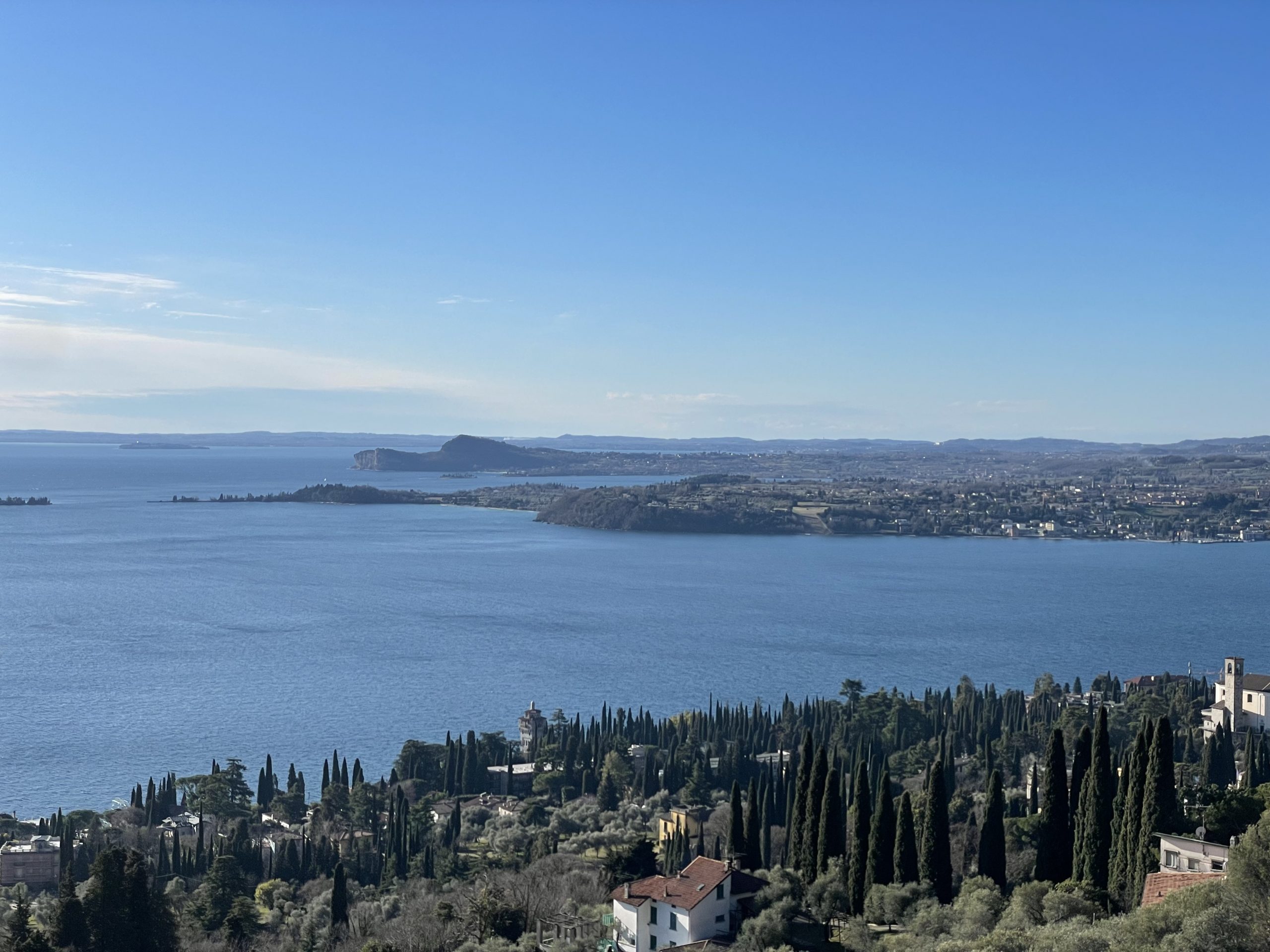 Die noch kalte und klare Luft bietet enorme Fernsicht bis zu dem ca. 150 Kilometer südlich von Gardone liegenden Apennin