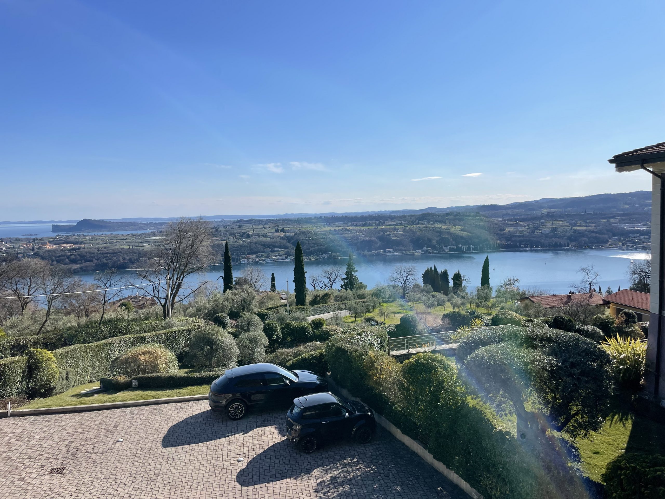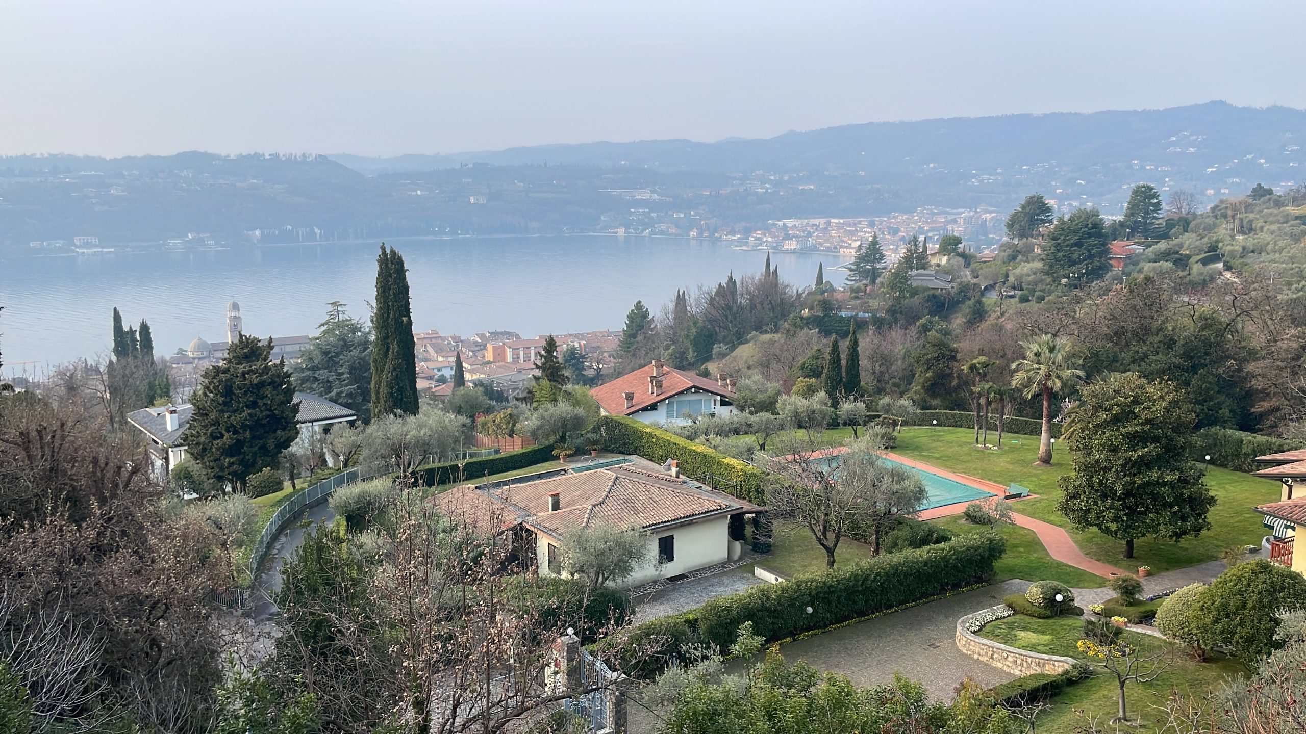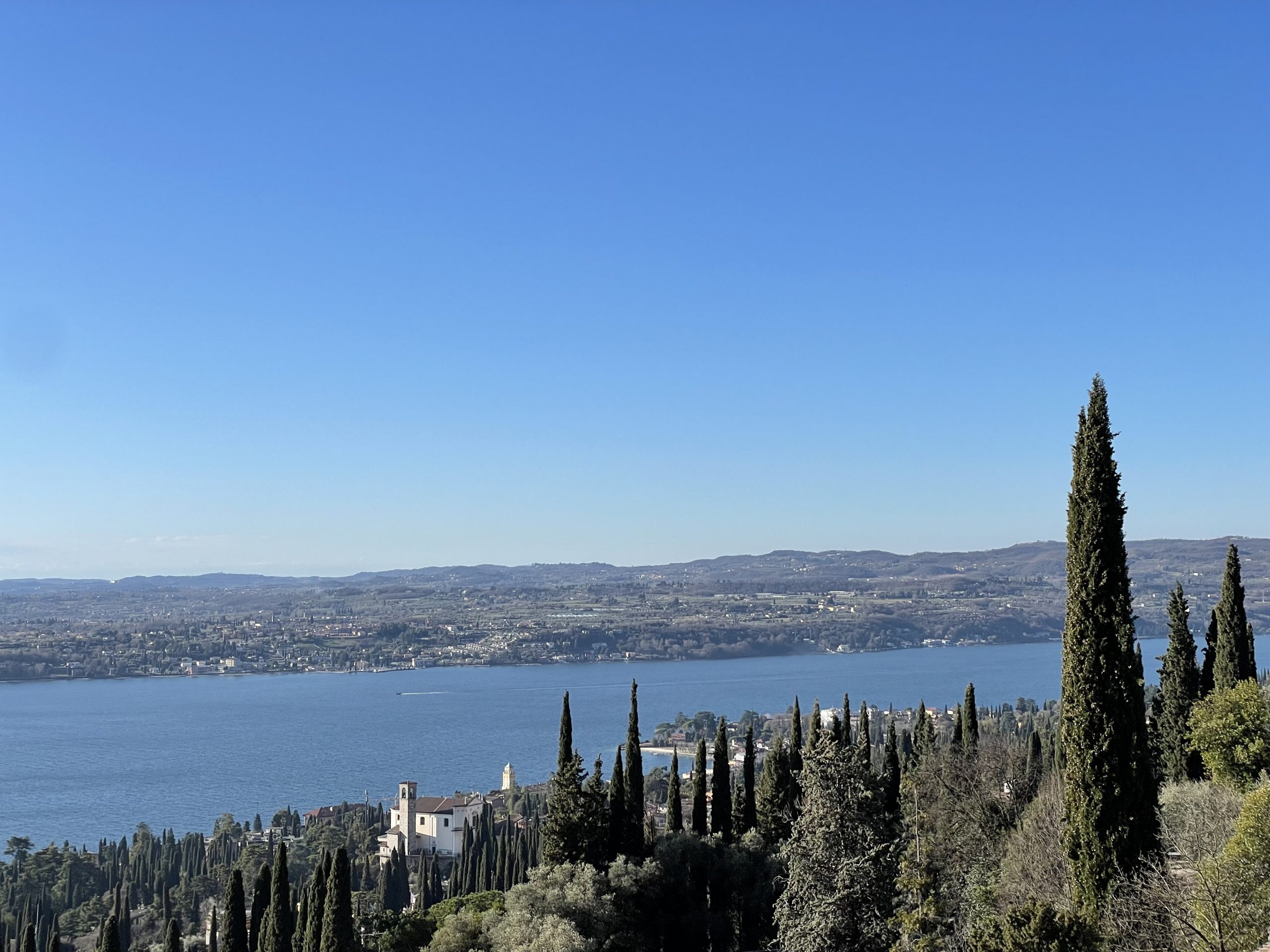 Die noch kalte und klare Luft bietet enorme Fernsicht bis zu dem ca. 150 Kilometer südlich von Gardone liegenden Apennin