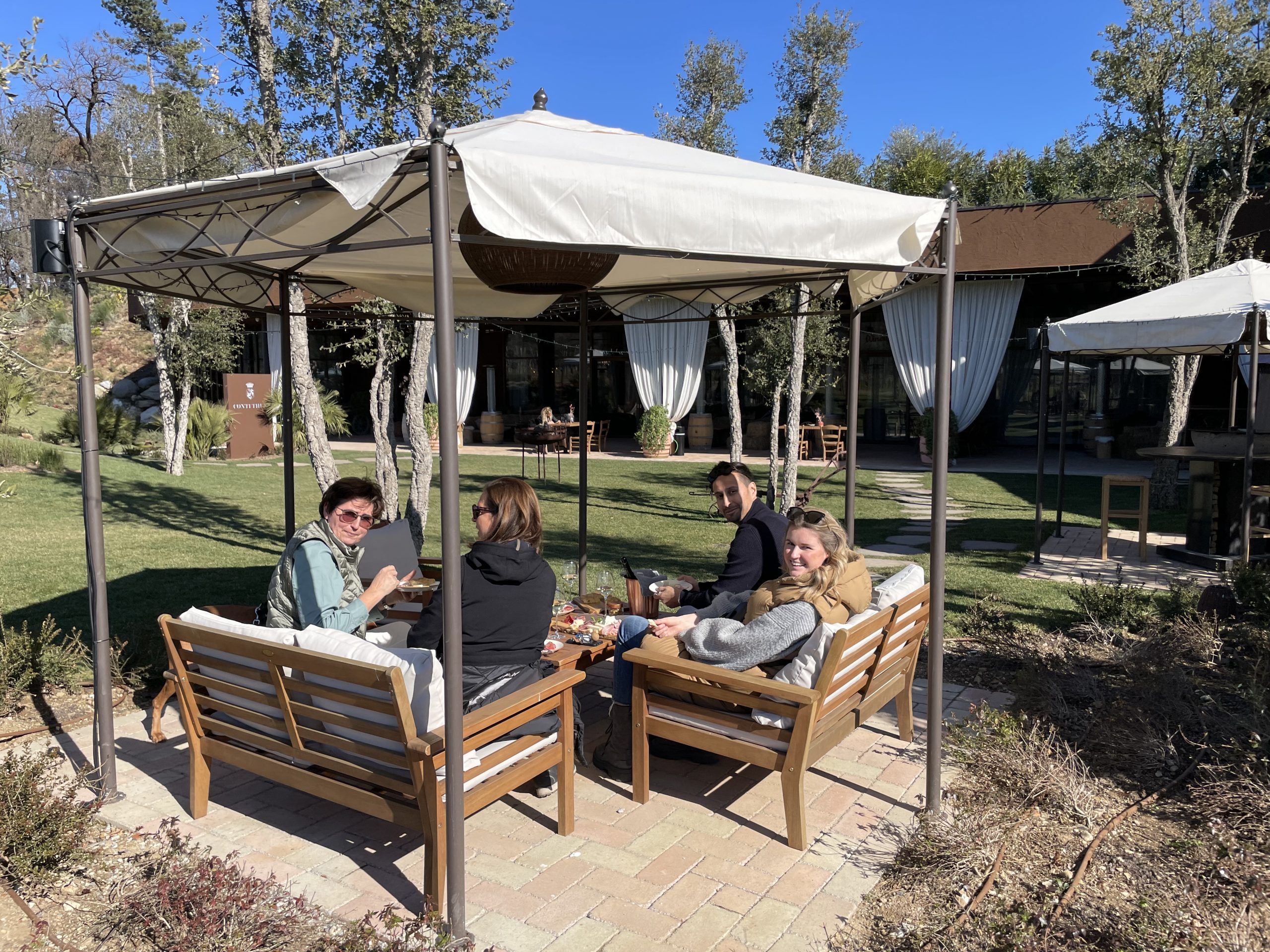 Gemeinsam machen wir einen Besuch im Weingut Conti Thun, die über den Winter ebenfalls ihr neues Restaurant fertiggestellt haben