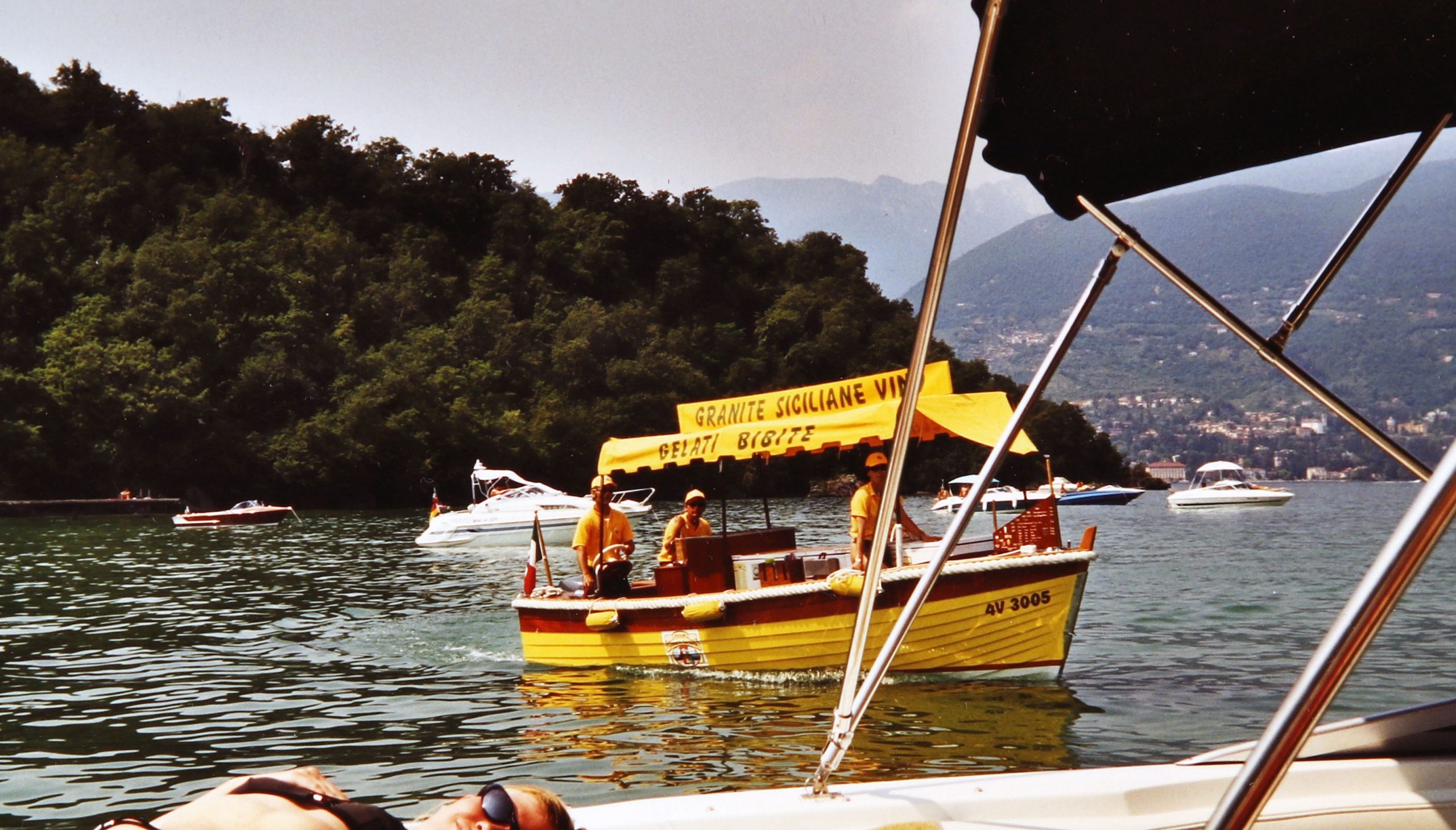 Eine durchaus smarte Geschäftsidee den träge in der Baia del Vento vor Anker liegenden Bootsbesatzungen gekühlte Getränke, Snacks und auch Eis direkt von Bordwand zu Bordwand zu verkaufen