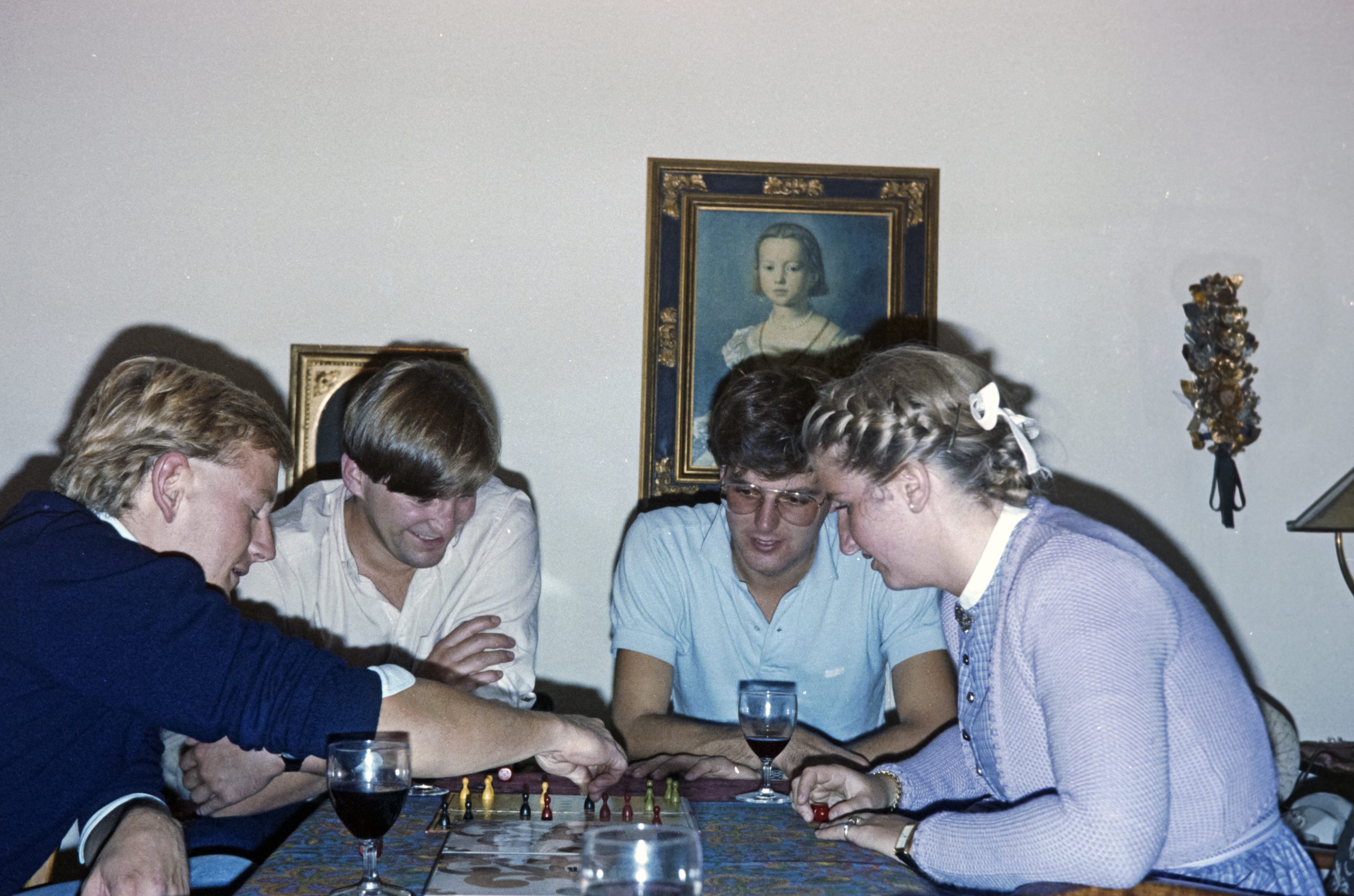 Die ältesten Nachweise für Brettspiele sind bildliche Darstellungen von Spielenden sowie ausgegrabene Spielpläne des Alten Ägypten, dort meist als Grabbeigaben, und aus Babylonien. ... Die ältesten, noch heute gebräuchlichen Brettspiele sind Go und Mühle, die beide gesichert bereits vor der Zeitenwende gespielt wurden. So weit zurück müssen wir gar nicht. In den frühen 80er Jahren ging man - wie heute - entweder aus oder man traf sich zum Spieleabend, da damals einige sehr schöne Spiele auf den Markt kamen. Allerdings, an diesem Abend reichte uns - gemeinsam mit Martin Kühner und Sigi Nuemann - in unserer Wohnung in der Schleissheimer Strasse auch ganz einfach und traditionell eine Runde "Mensch ärgere dich nicht". Eine schöne und unbeschwerte Zeit, die unbeschreibliche Leichtigkeit des Seins. Da waren wir noch in den ersten Semestern unseres Studiums und das ganze Leben war spielerisch und leicht.