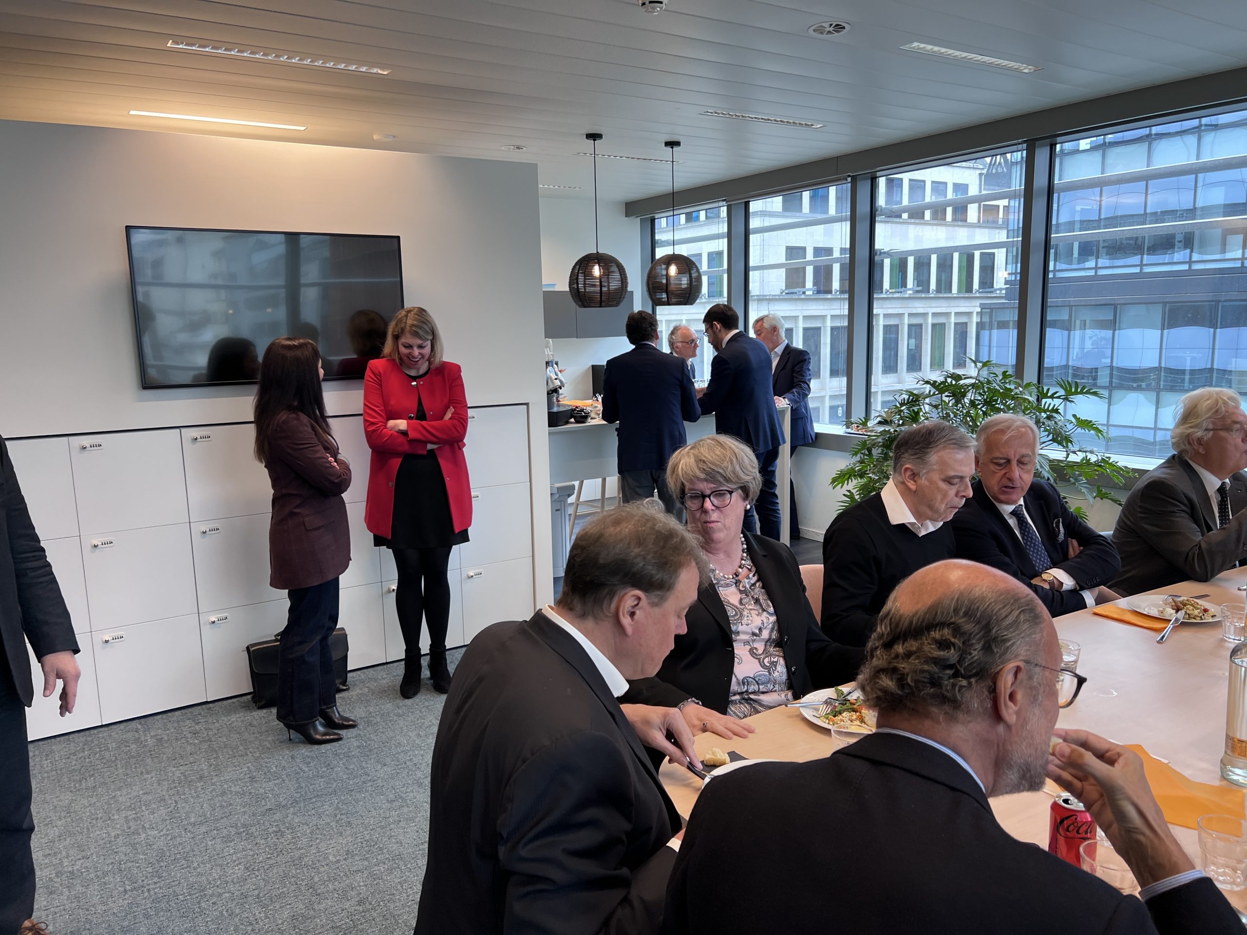Das Mittagessen des nächsten Tages nahmen wir in unserem neuen EURATEX Büro in der Rue Belliard in der Nähe der EU Kommision ein. In unserem sehr repräsentativen Gebäude ist auch die CEFIC, der Europäische Chemie Verband ansässig, dessen große Meetingräume wir nutzen können, wenn wir mehr als 20 Teilnehmer bei unseren Meetings haben.