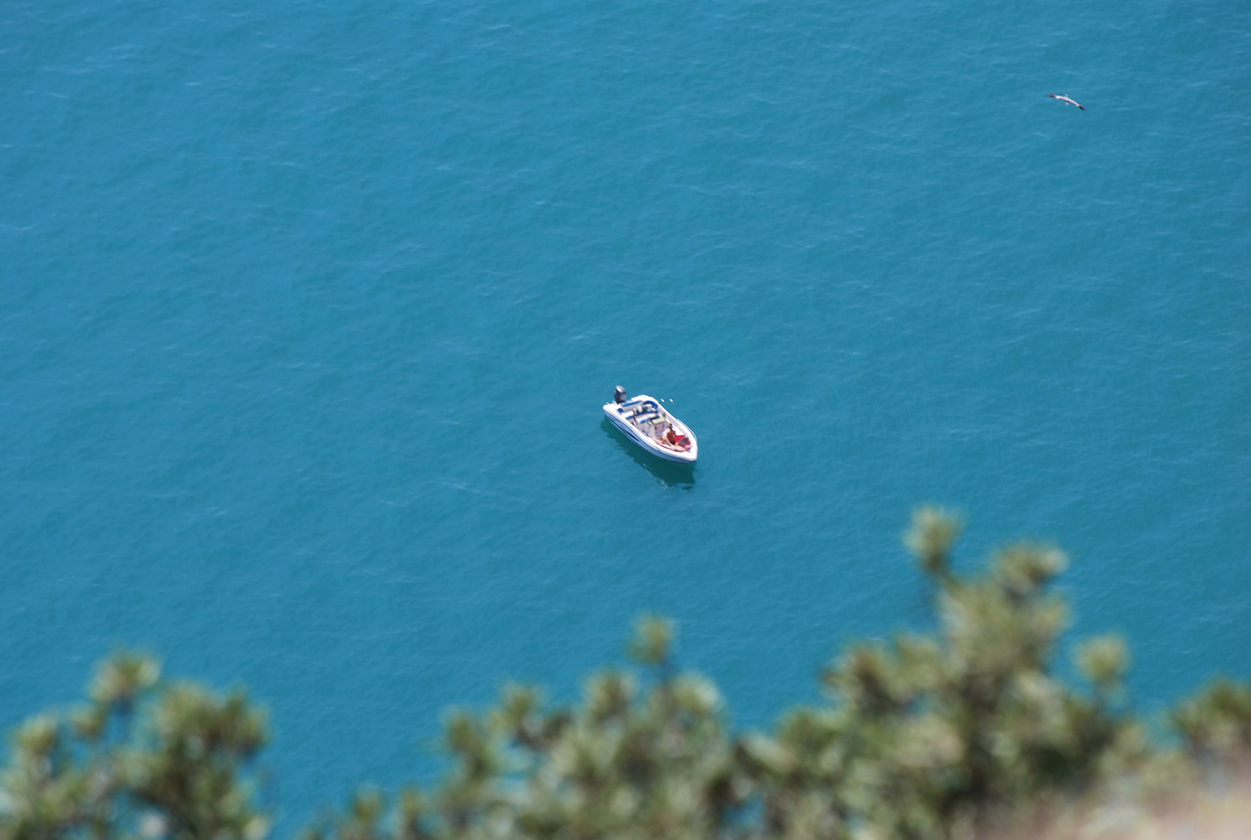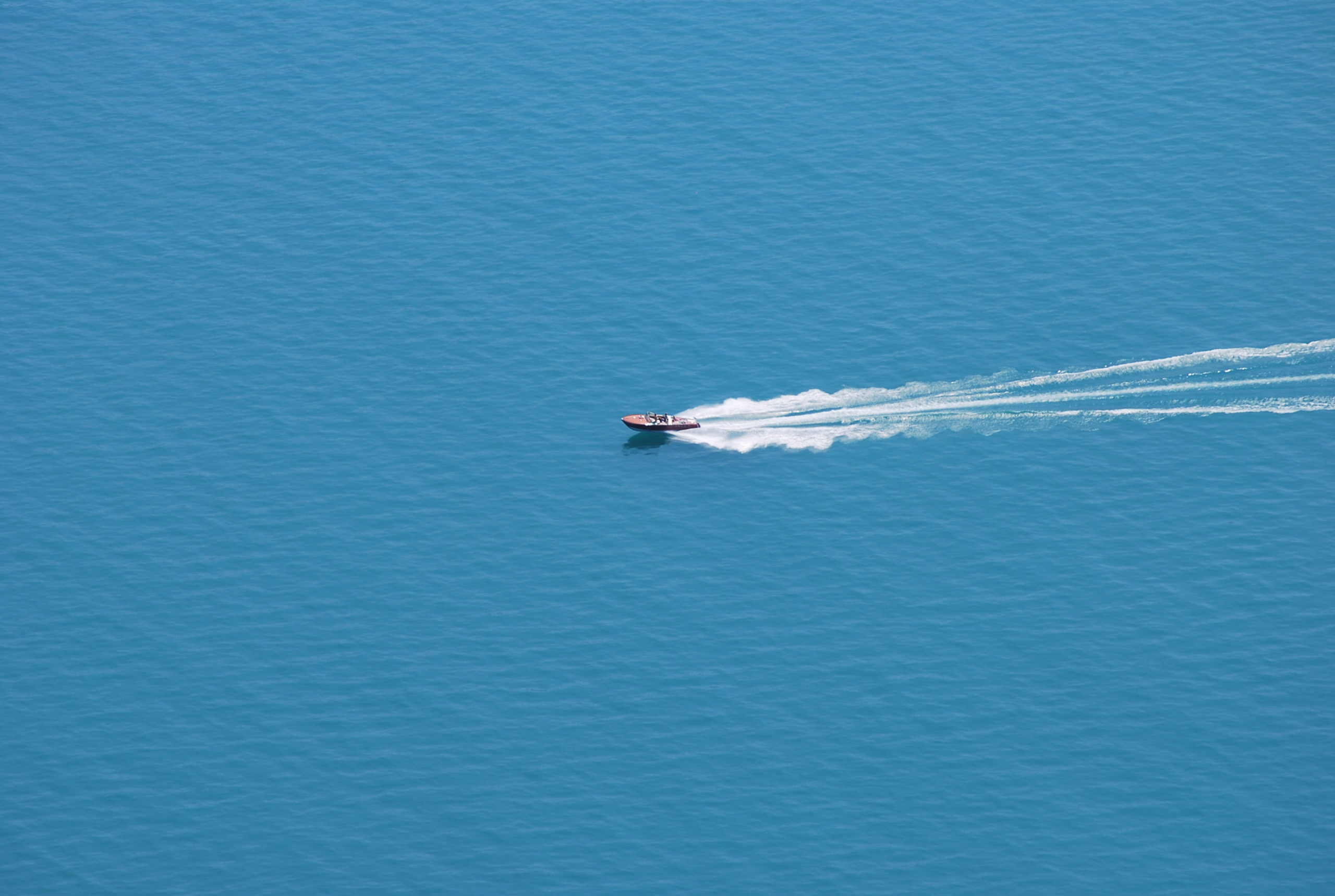 Perspektivenwechsel ... weit unter uns ist eine Riva Aquarama unterwegs