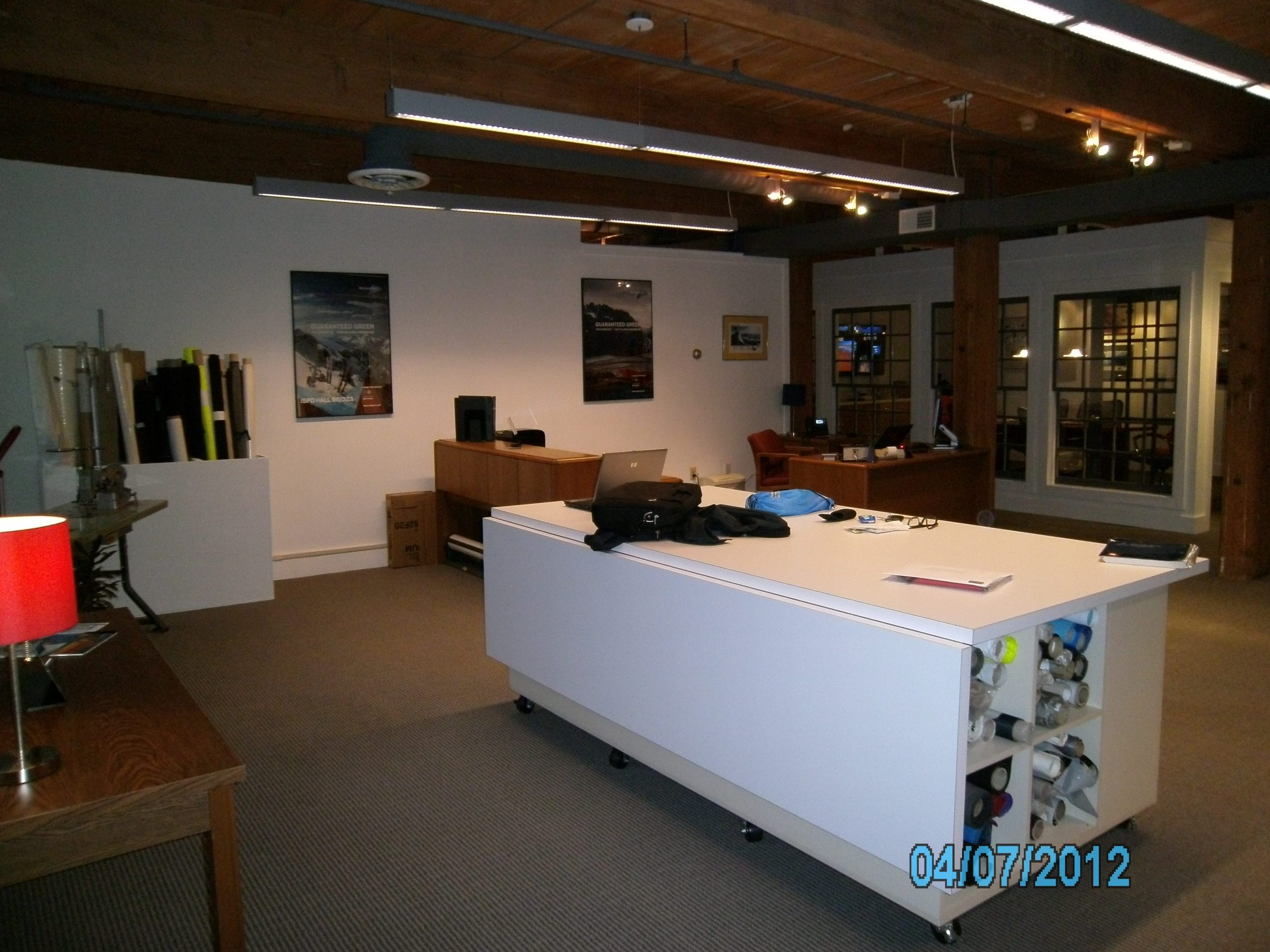 Die Laminatsrollen waren gut verstaut und es gab nur wenig Schnickschnack im Büro - ganz im Gegensatz zu unserer früheren US Dependance, in dem sich der staubige Muff breitgemacht hatte