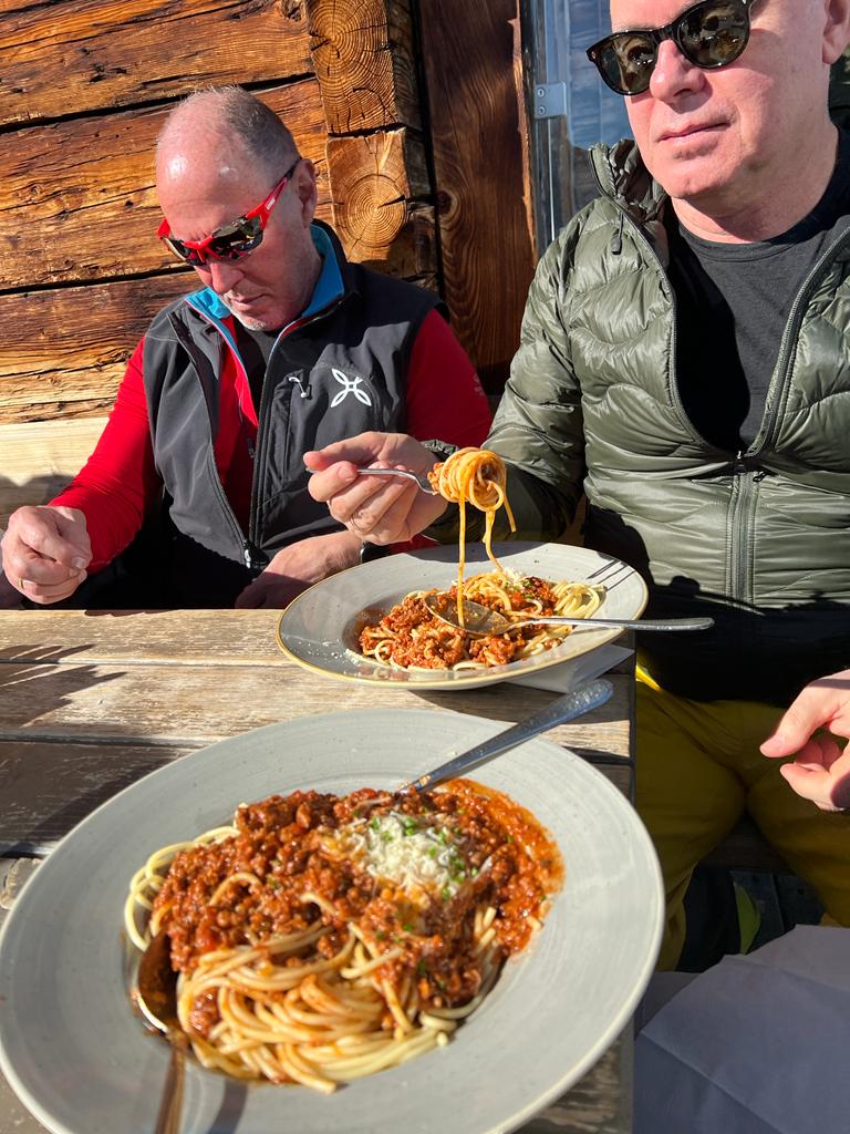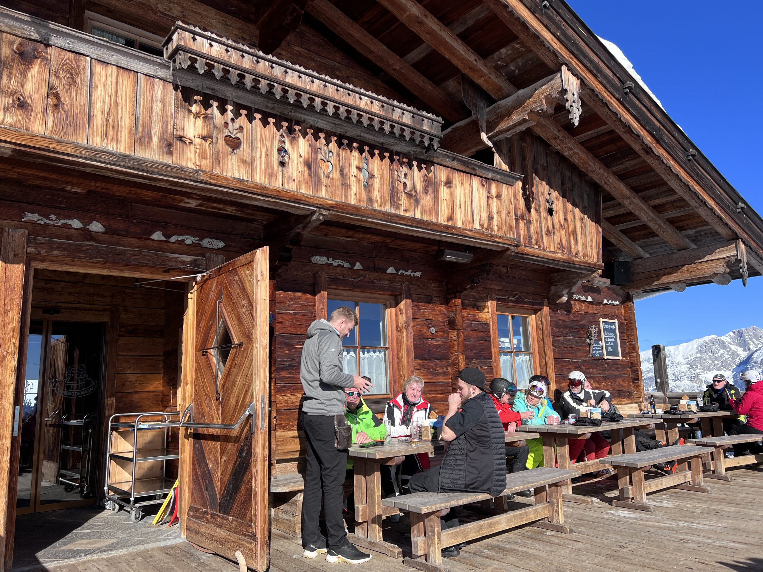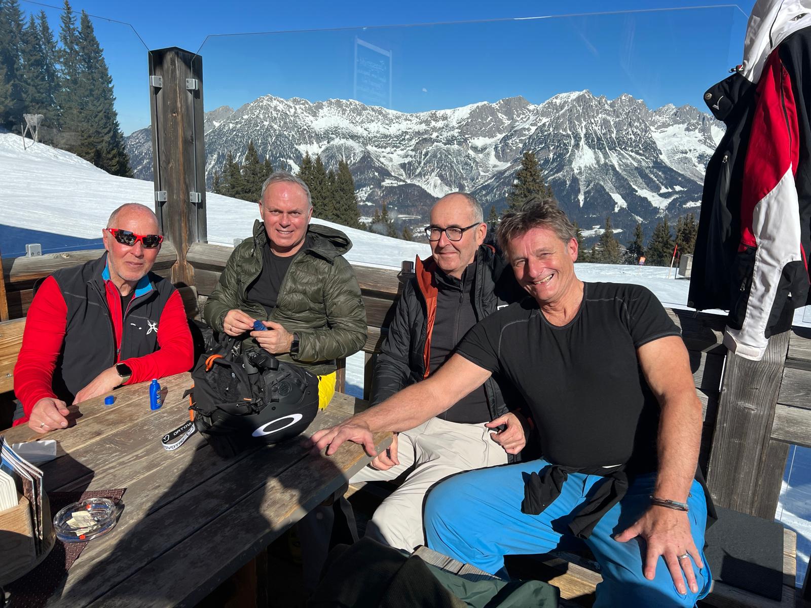 Die Early Birds sind auch in der Folgewoche komplett unabhängig - und damit auch ohne mich - on Tour und finden ohne fremde Hilfe die Terrasse unserer Skihütte fürs Mittagessen