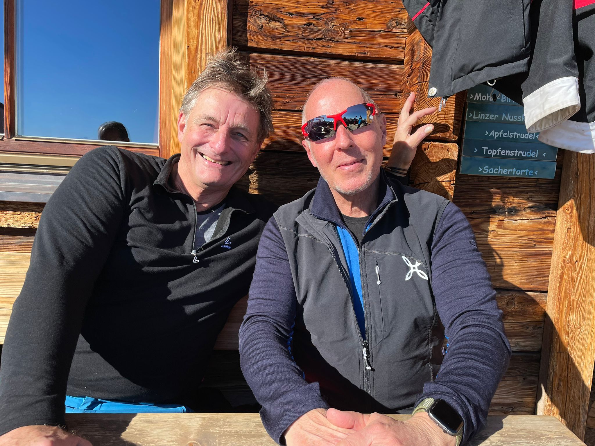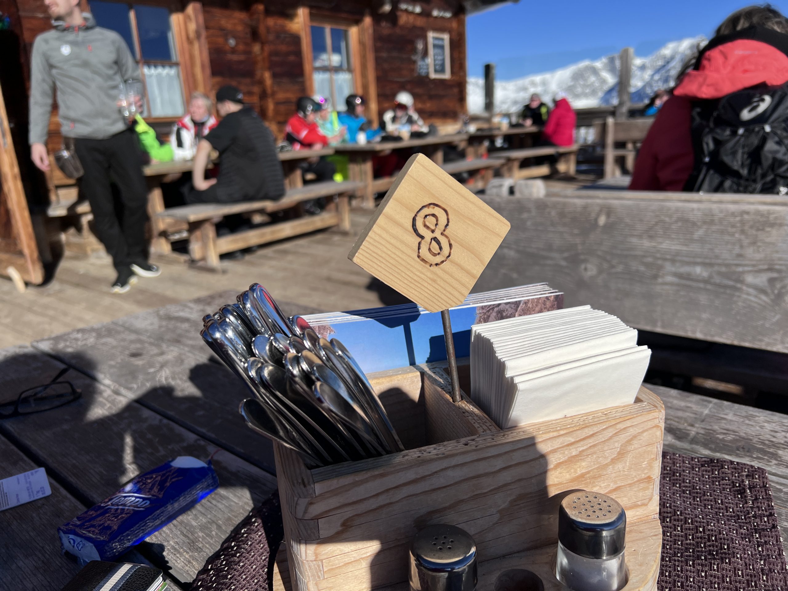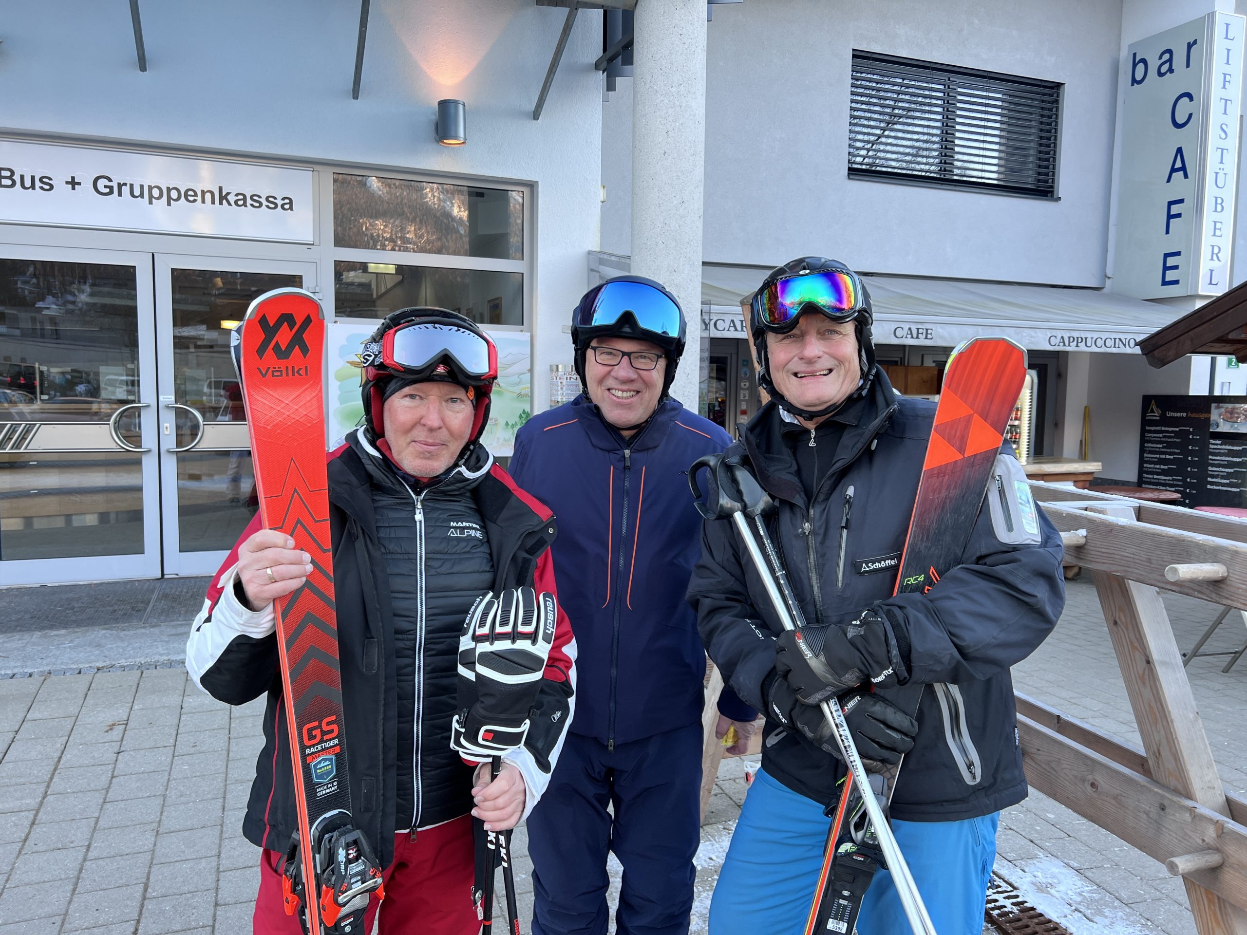 Die Early Birds sind auch in der Folgewoche komplett unabhängig - und damit auch ohne mich - on Tour und finden ohne fremde Hilfe die Terrasse unserer Skihütte fürs Mittagessen