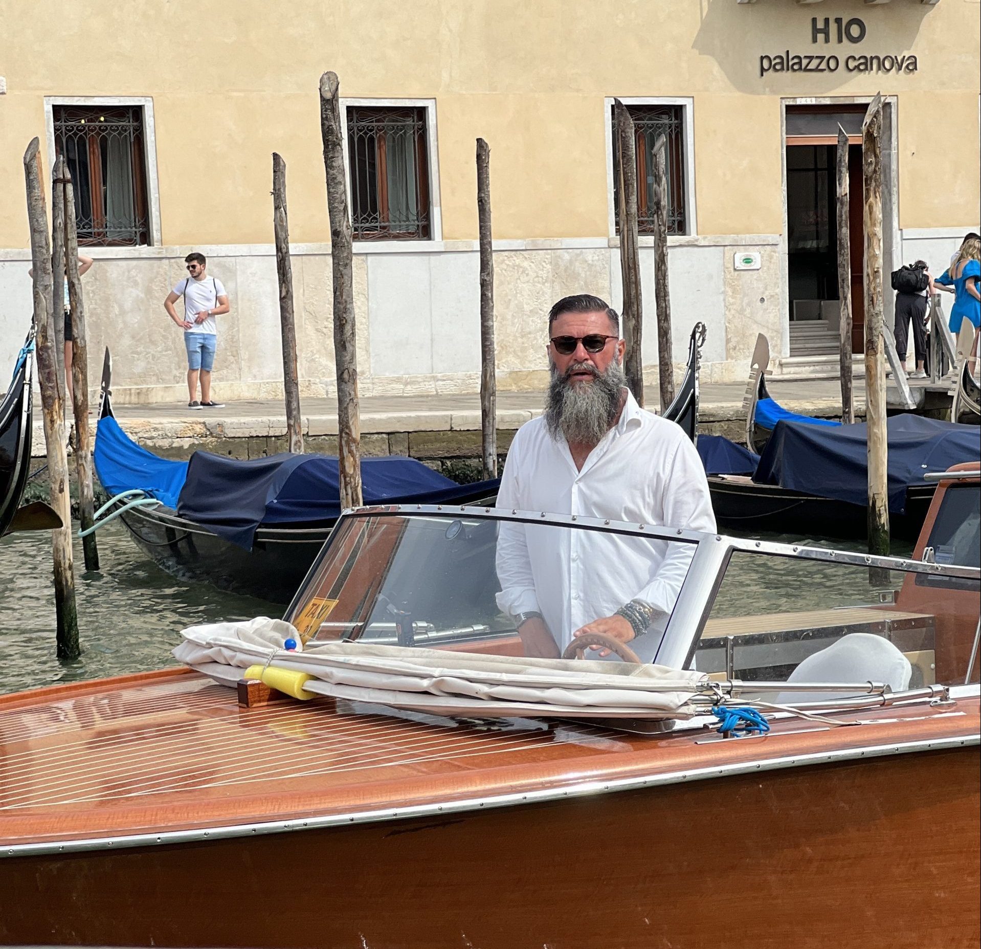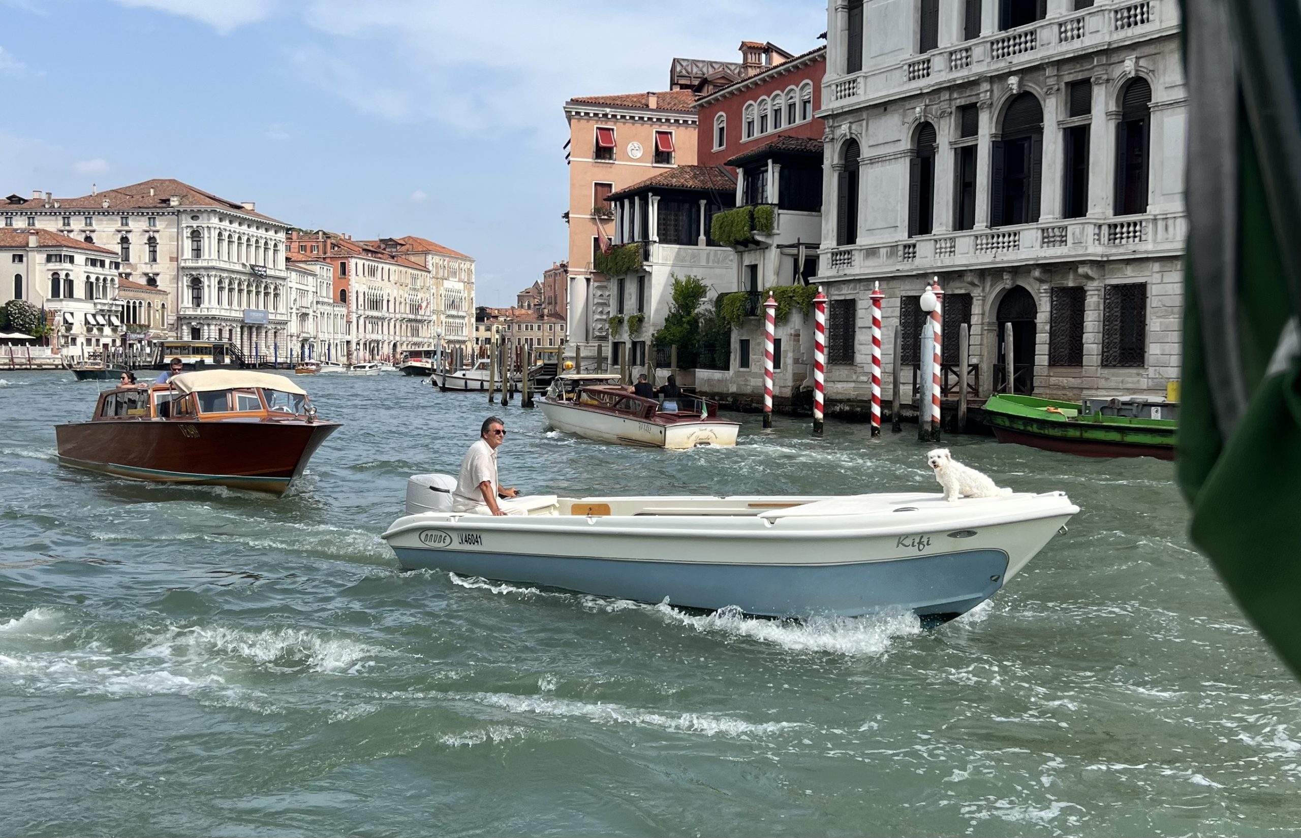 Schon auf der Fahrt auf dem Canal Grande gibt es viel zu sehen. Das langbeinige Fotomodell sahen wir nur einmal ... der Vollbärtige Taxifahrer kam uns mehrmals entgegen