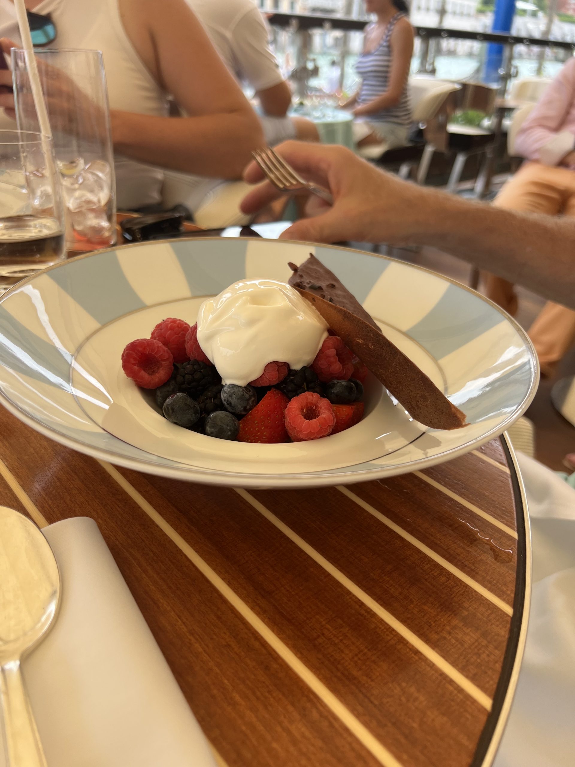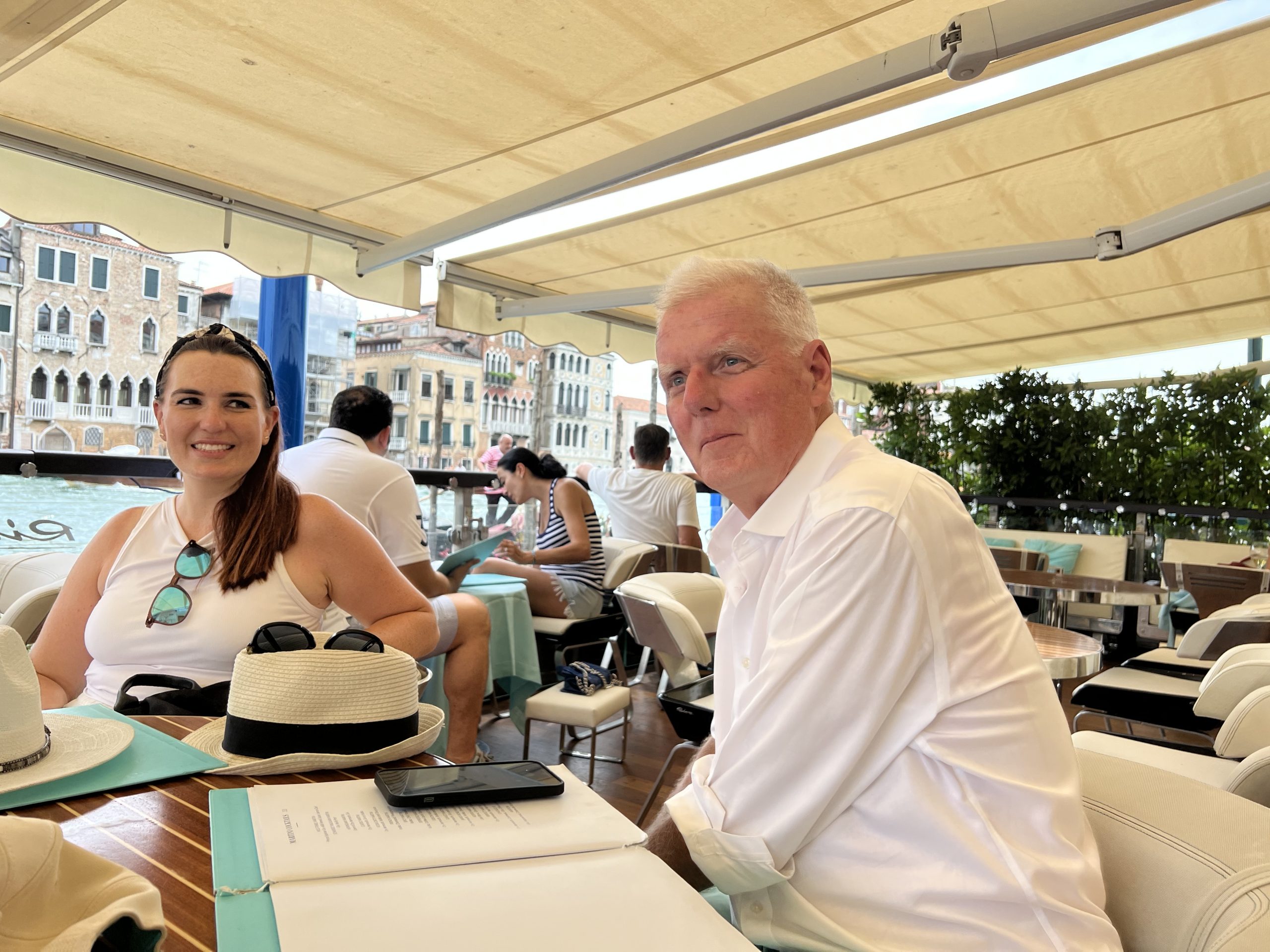 Später geniessen wir auf Einladung von Sanne auf der Riva Terrasse des Gritti Palace Hotel direkt am Wasser Drinks und Desserts ... und erinnern uns dankbar an die grandiose Geburtstagseinladung von Ulli Lohr auf die Dachterrasse des Hotels Danieli