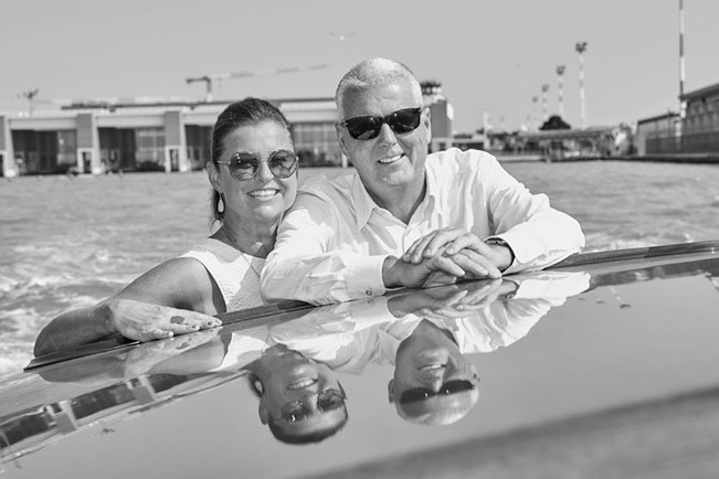 Mitte September hatte uns Uli Lohr zu einem besonderen Event anläßlich seines runden Geburtstags (70) eingeladen. Als Treffpunkt der bereits um 10:00 Uhr morgens - in Frühschoppen Stimmung - bestens gelaunten Geburtstagsgäste hatte Uli das Isartor in München vorgegeben. Wo das geplante gemeinsame Mittagessen stattfinden würde, war noch ein Geheimnis und so auch als entsprechende Überraschung geplant. Die war es dann auch, da es vom Isartor aus in einem Omnibus mit - erster - köstlicher Champagner Versorgung zum General Aviation Terminal des Flughafens München (GAT) ging. Hier wartete bereits eine von Avanti Air gecharterte Fokker 100 auf uns, mit der man Annette und mich sowie 50 weitere Gäste in knapp 40 Minuten direkt zum Flughafen Marco Polo in Venezia-Tessera brachte. Vom dortigen Flughafen direkt an der Lagune von Venedig erfolgte der weitere Transport der feiernden Gesellschaft mit Taxibooten zum Luxushotel Danieli direkt an der Riva degli Schiavoni - nur wenige Meter vom Markusplatz entfernt. Nach dem köstlichen und feudalen Mittagessen auf der Terrasse gab es eine traditionelle Gondelfahrt durch die Kanäle der Stadt bevor wir wieder mit den Taxibooten zurück zum Flughafen in Venedig aufbrachen. Einem weiteren kurzen und herrlichen Flug über die Alpen nach München folgte ein gemeinsames Abendessen in der Bar München auf der Maximilianstrasse. Das alles bei herrlichem Wetter und in Begleitung netter Menschen .... kann nicht schöner sein ... vielen Dank an Birgit und Uli für diesen tollen Tag