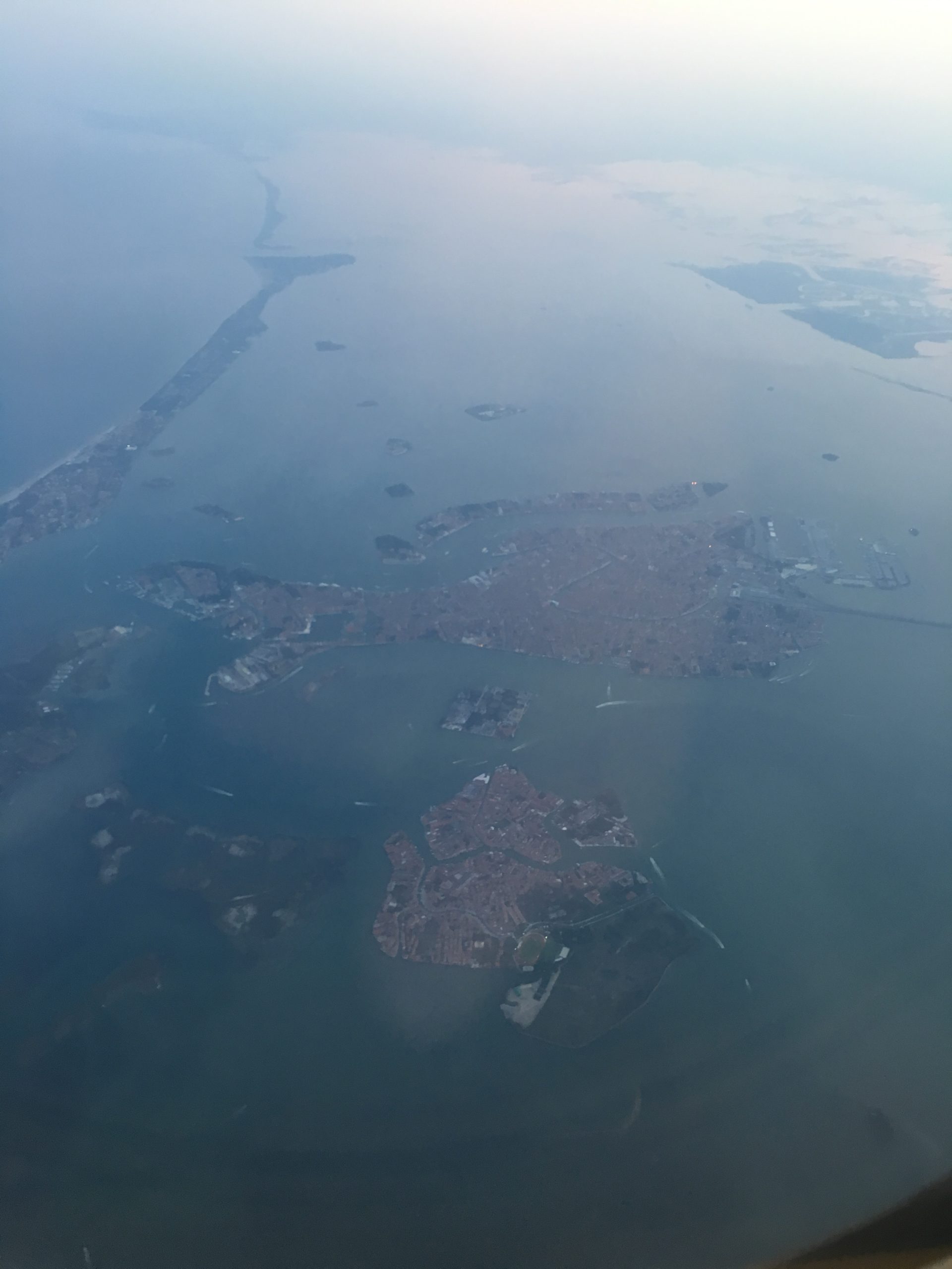 Nach dem Start auf dem Rückflug nach München geniessen wir einen herrlichen Venedig Überblick aus der Vogelperspektive