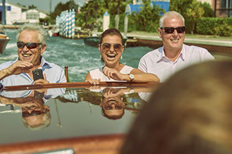 Nach der Ankunft am Flughafen Venedig ging es für uns stilvoll mit schönen Holzbooten in die Stadt zum Grandhotel Danieli