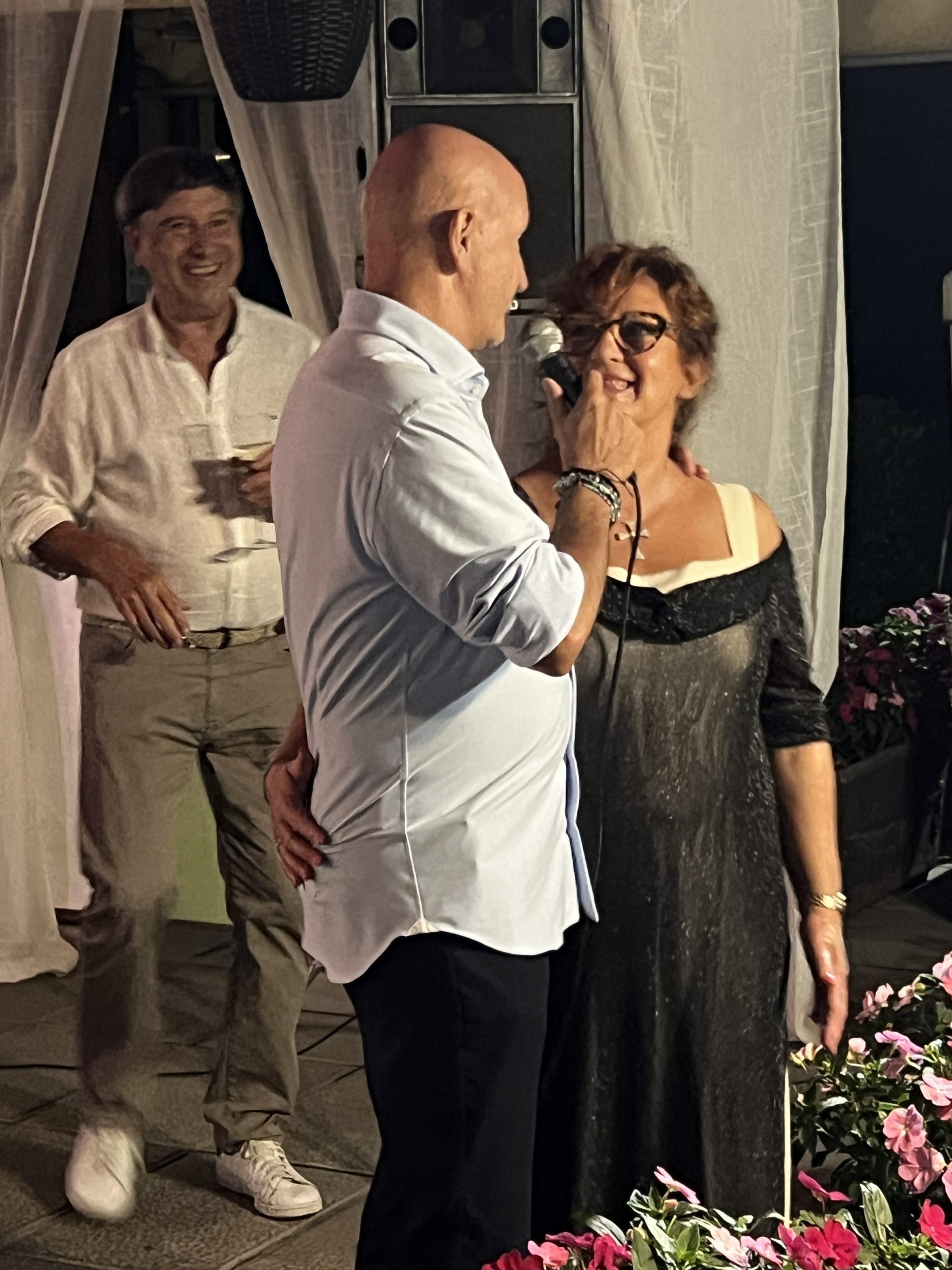Dony & Giorgio - sehr nette italienische Bekannte, die wir vor vielen Jahren über gute und günstige Haarschnitte sowie die entsprechende Empfehlung seitens Werner Conrad in Salò kennengelernt hatten - haben Grund zum Feiern. Giorgio rundet mit seinem 60er, verheiratet sind die beiden 30 Jahre und ihren Friseursalon haben sie bereits 40 Jahren. Grund genug eine schöne Party im Golfclub Colombaro in Cunettone zu schmeissen. Eva und Werner Conrad, Susanne & Mathias Gehrckens und ich sind die einzigen deutschen Gäste. Die sonstigen Gäste sind ausschließlich italienische Freunde und die Familie. Ette fällt wegen einer Augenlidentzündung aus. Zu den jährlich wiederkehrenden Partys gehören auch Geburtstagsfeiern, die je nachdem wie alt man geworden ist, ganz unterschiedlich ausgestaltet sein können. Wie bei den meisten Partys ist eine gute Vorbereitung die halbe Miete, damit der Event ein Erfolg und nachhaltig in Erinnerung bleibt. Hier war alles perfekt organisiert und die Location, das Essen und die Musik haben super gepasst. Man kann sich leider den Wochentag für eine Party nicht aussuchen. Damit die meisten Gäste auch Zeit finden und am nächsten Tag nicht früh zur Arbeit müssen, empfiehlt sich ein Freitag oder Samstag als Party-Tag. Wir waren an einem Sonntag eingeladen, was für eine Friseurmeisterin wie ein Samstag ist, da am Montag nicht gearbeitet wird und damit am ehesten eine Open End Party garantiert wird. Es sollte eine Location gewählt werden, die genügend Platz für alle eingeladenen Gäste bietet. Sie sollte einerseits nicht zu klein sein, so dass sich alle auf die Füße treten aber auch anderseits nicht zu groß, da sonst aufgrund der schieren Größe keine ausgelassene Stimmung aufkommen kann. Das hat ohne Ausnahme gepasst. Die Stimmung steht und fällt zudem unweigerlich mit dem Essen und dem Trinken. Somit sollte die Menge und die Auswahl wohl überlegt sein. Das hat ebenfalls bestens funktioniert, da die Verpflegung durch das Club Restaureant hervorragend gewesen ist.