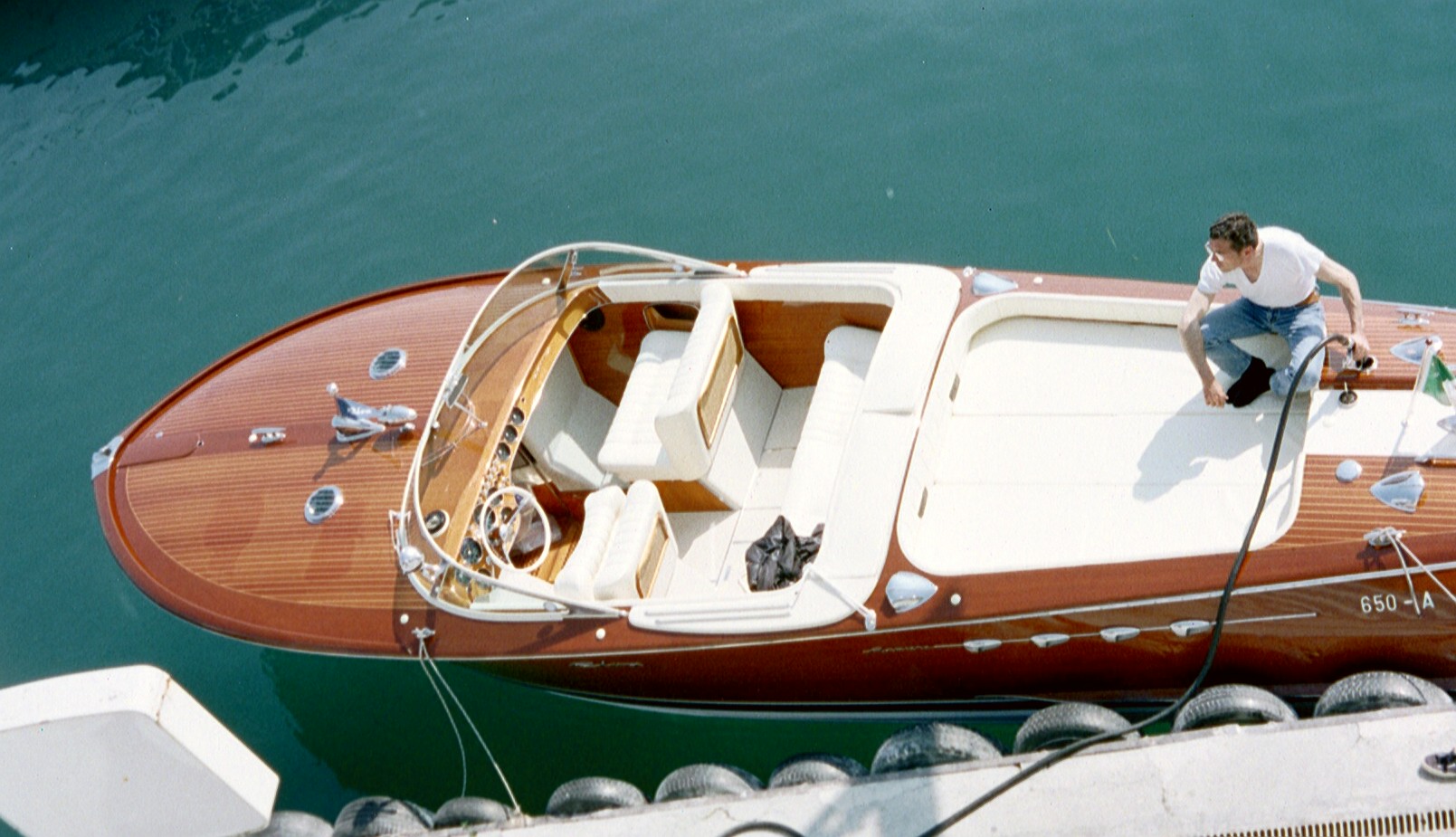 Am 28. Februar 2001 habe ich nach einer kurzen, jedoch sehr intensiven Suche unsere Aquarama mit dem Namen Extravaganza bei Alberto Arcangeli vom Centro Nautico in Salò gekauft und direkt übernommen. Dem Kauf ging meine umfangreiche Recherche des Marktes für Aquaramas am Gardasee, dem Lago d´Iseo, dem Lago Maggiore, Luganer See und der Cote d´Azur voraus. Die Aquarama mit der Baunummer 321 stammt aus dem Baujahr 1969 war zuvor viele Jahre im Besitz eines holländischen Unternehmers. Eigentlich ist sie im Januar 2001 schon einem anderen Interessenten aus München versprochen worden, der sich dann jedoch um einige wenige Stunden zu spät bei Alberto Arcangeli vom Centro Nautico - dem Verkäufer in Salò - gemeldet hat, um den Kauf final zu besiegeln. In dieser Zeit war ich selbst vor Ort in Salò und konnte dort das Geschäft mit Alberto Arcangeli zügig zur beiderseitigen Zufriedenheit abschließen. Das habe ich nie bereut, da wir 20 Jahre lang ausschließlich viel Spaß und Freude mit der Extravaganza hatten