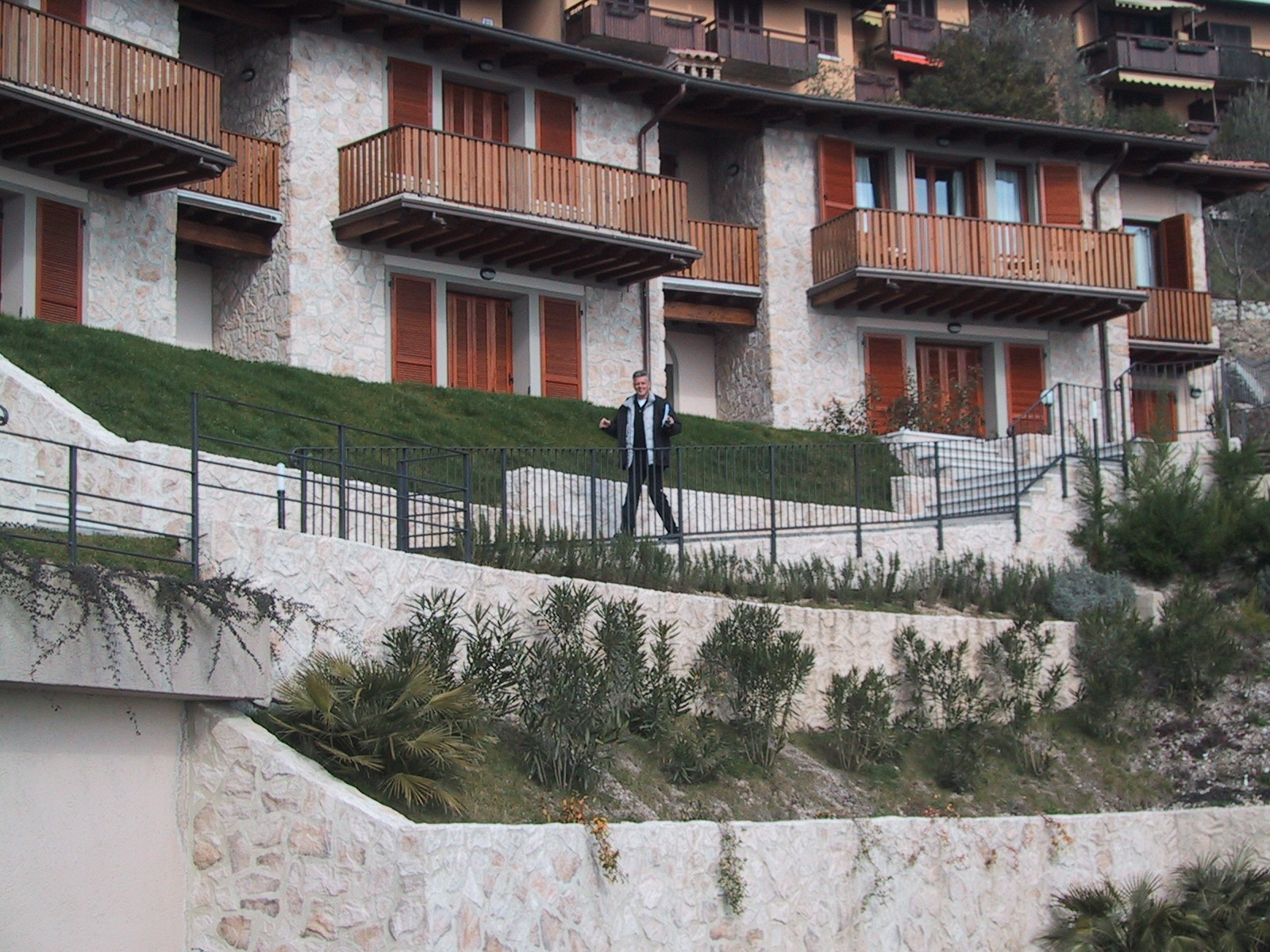 Nachdem wir im Sommer 2000 im Rahmen einer Urlaubswoche im Hotel Fasano sehr großen Gefallen am Gardasee gefunden haben, entschieden wir uns gemeinsam mit der Familie Hornberger bereits im Herbst für die Anmietung von jeweils einer Wohnung in einem neuen Doppelhaus der Familie Mayr in Fasano-Sopra. Mayrs sind auch die Eigentümer des Grandhotels Fasano und die beiden Besitzersöhne Patrick und Oliver waren mit mir im Internat in Neubeuern. Vermieter ist Mutter Hicky gemeinsam mit ihrem Sohn Patrick, der um die Ecke in Supiane lebt. Die Anlage in der Via Belvedere ist gerade neu gebaut worden und wir haben somit eine Anmietung als Erstbezug. Die Anlage hat eine herrliche Lage mit einem schönem zentralen Pool und großer Tiefgarage. Die Einrichtung entspricht dem Stil des Hotels und ist der Handschrift von Hicky Mayr zu verdanken. Dafür gibt es auch Service wie im Hotel und wir müssen uns um nichts kümmern; alles war da und wir leben gemeinsam mit den unter uns wohnenden Heike und Charly Hornberger in einem ziemlich perfekten und ruhigen Doppelhaus.
