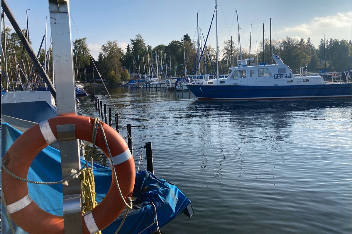 Selbst die Wasserschutzpolizei aus Starnberg schaut vorbei, um zu prüfen, ob bei unserer Taufe alles mit rechten Dingen zu geht