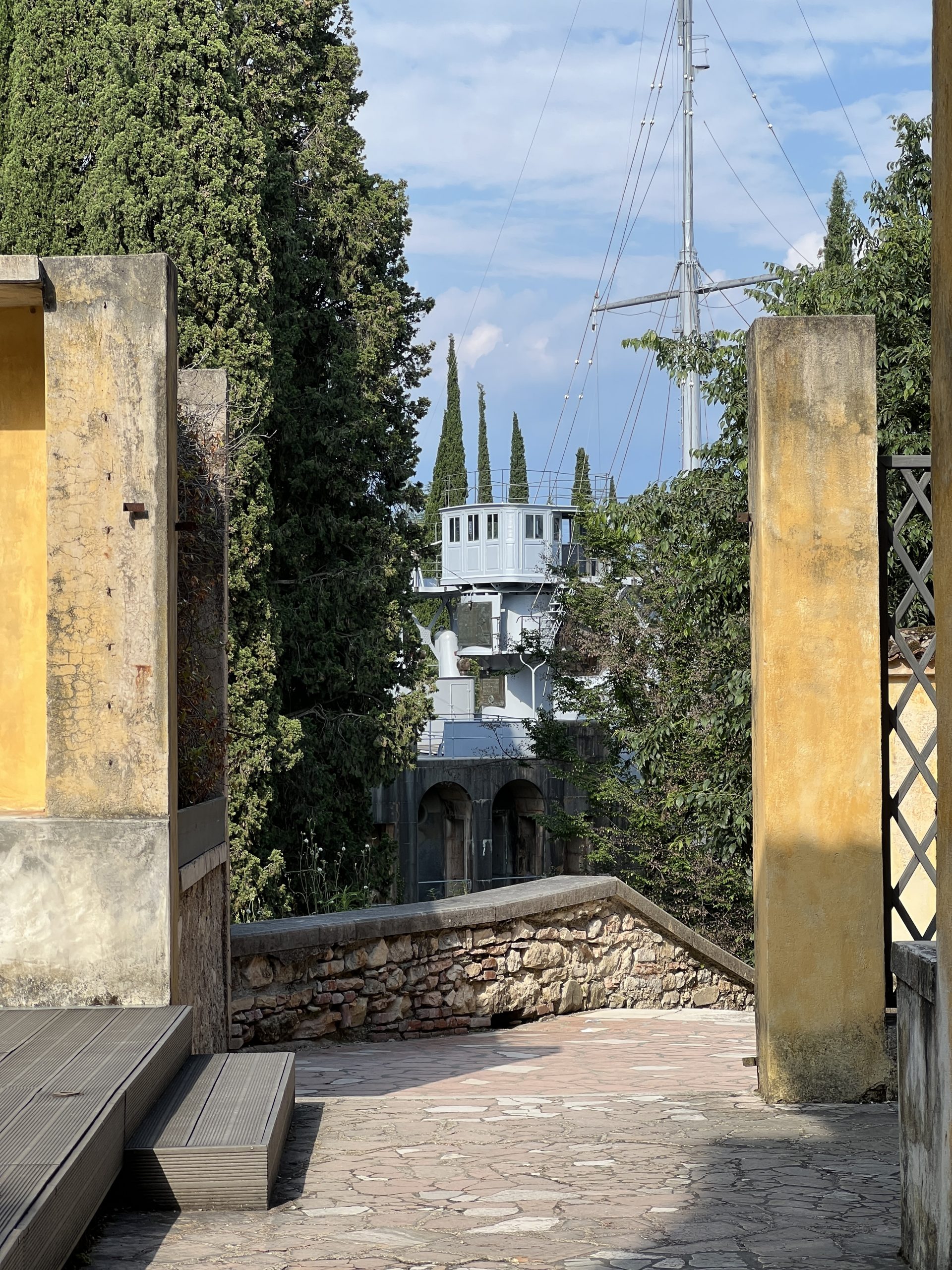 Die immensen Ausmaße der eindrucksvollen Villa nimmt man erst wirklich wahr, wenn man das Vittoriale selber besucht. Zwar fahren wir täglich an dem großem Grundstück vorbei, da es auf dem Weg zu unserem Ferienhaus in der Via Panoramica liegt. Duch die hohe Mauer, welche das Anwesen umgibt sieht man jedoch von den Innereien von aussen wenig