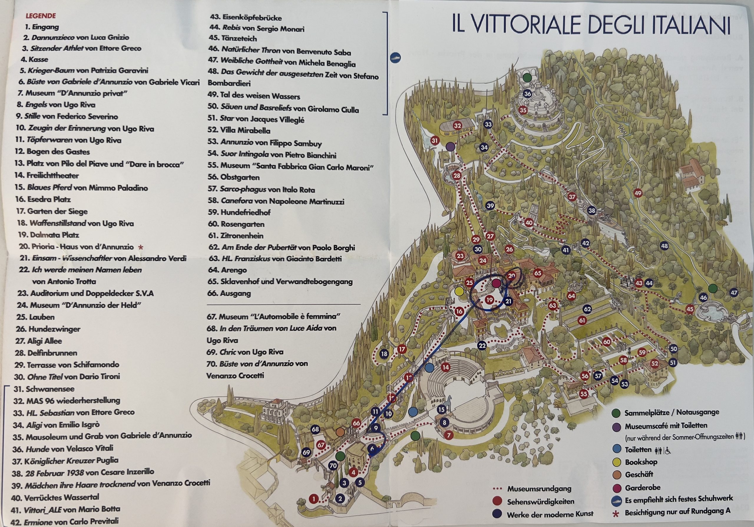 Ich hatte an diesem Tag das Glück in einer kleinen Zweiergruppe - mit mir war eine Kunst historisch umfassend gebildete ältere Dame aus Bagdad auf der Tour - und einem extrem kompetenten Führer und studierten D´Annunzio Experten namens Davide unterwegs zu sein