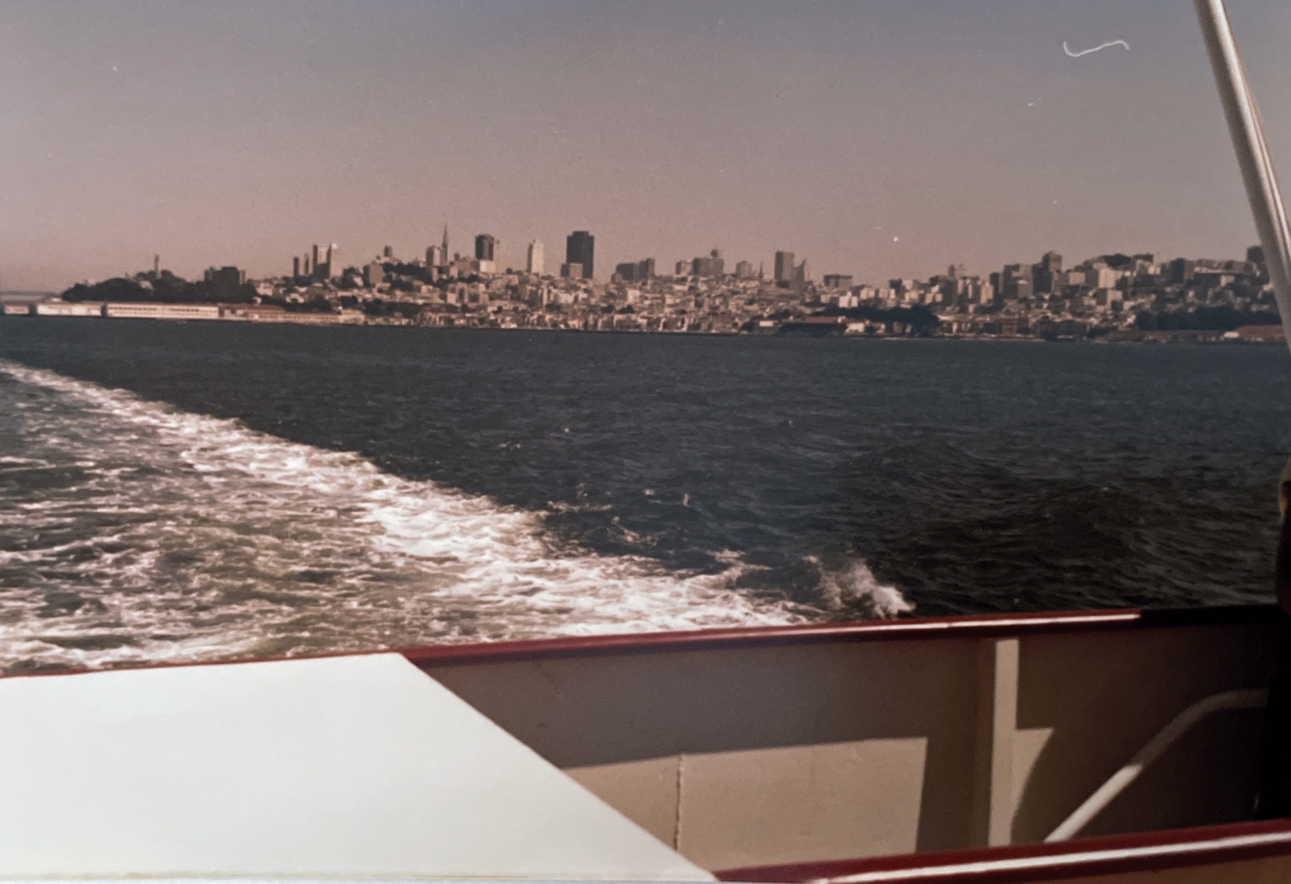 Der Blick zurück von der Fähre beschert uns den sensationellen Blick auf die Skyline San Franciscos.