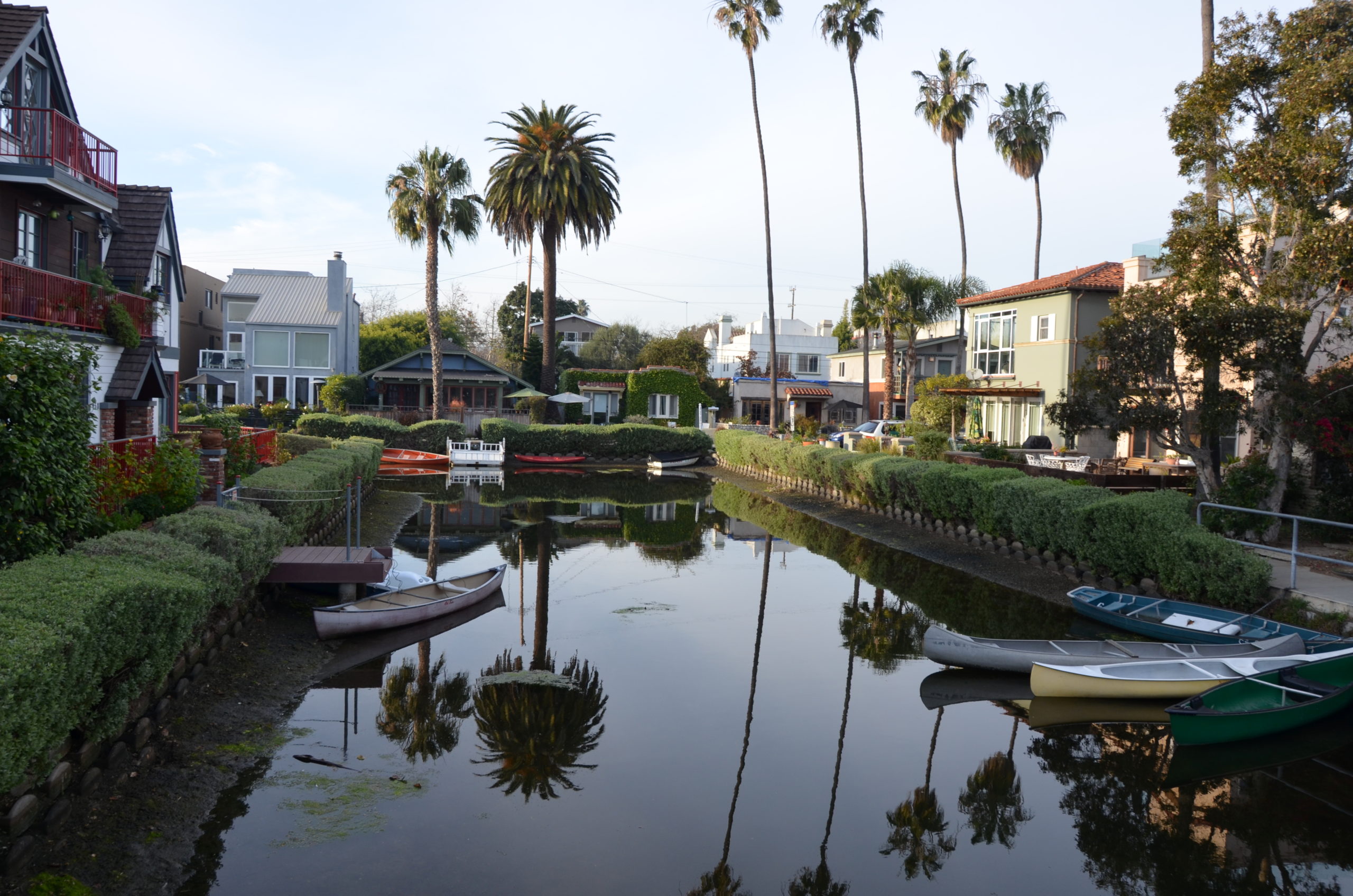 Angrenzend südlich von Santa Monica auf der Pacific Coast Highway ist Venice Beach – für die Einheimischen heißt es einfach nur Venice. Die Gemeinschaft wurde 1905 geboren und vom exzentrischen Millionär Abbot Kinney entwickelt, der den Ort nach seiner italienischen Lieblingsstadt geformt hat - komplett mit Plätzen und Kanälen. Diese Kanäle mit idyllischen, traditionellen Hütten kann man hier immer noch im Venice Canal Historic District sehen.