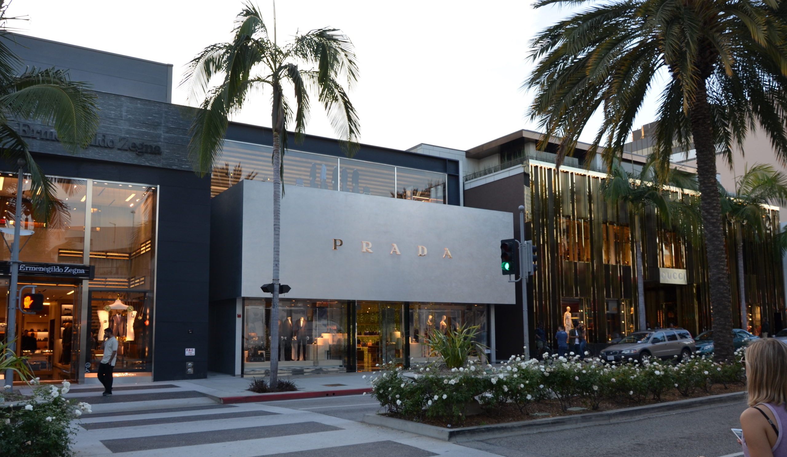 Der Rodeo Drive ist keine halbe Meile lang, aber jeder, der in der Modewelt einen großen Namen hat, ist an dieser Straße vertreten, zahlt die höchsten Mieten Kaliforniens, verkauft teuerste Couture, dazu Schmuck, Uhren und zeigt Flagge: Valentino und Versace, Dolce&Gabbana und Armani, Bulgari und Cartier - alle wollen mitspielen an diesem Straßenabschnitt zwischen Wilshire- im Süden und Santa-Monica-Boulevard im Nordwesten.