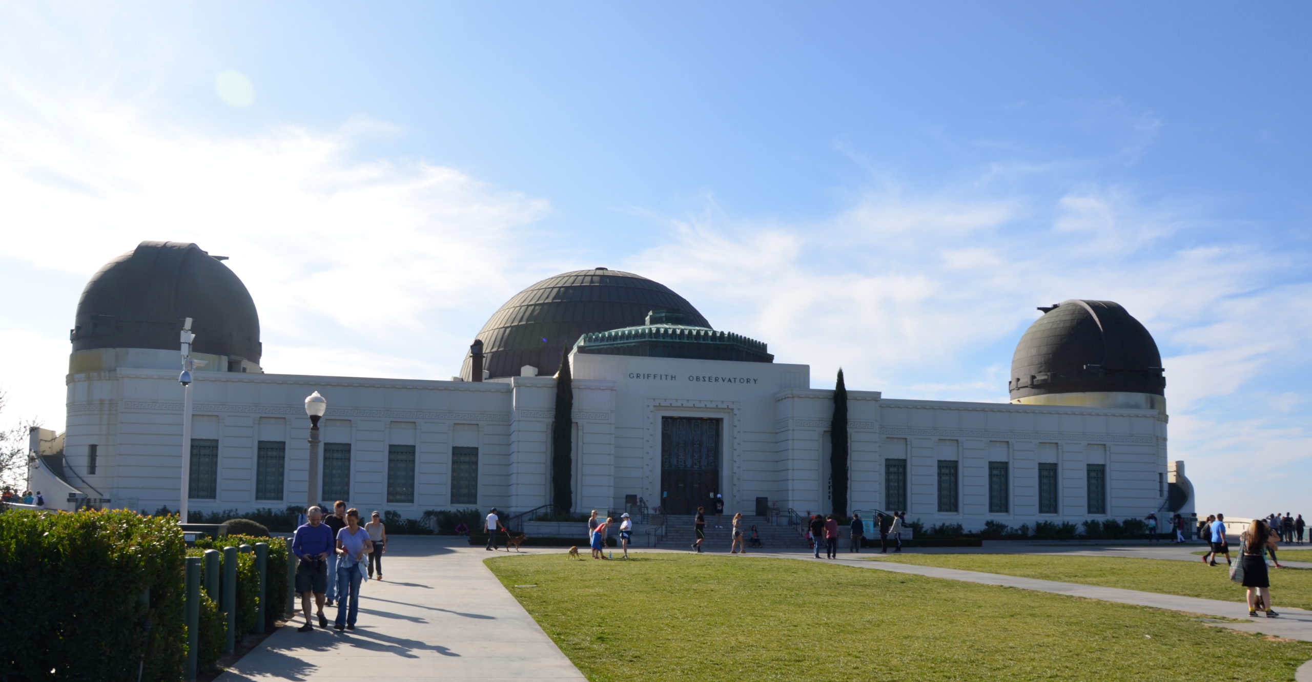 Das im Jahr 1935 erbaute Griffith Observatory ist fast so berühmt wie der Hollywood-Schriftzug. Es zieht jeden an, der „das All, die Wissenschaft, einen herrlichen Blick über L.A. und die Art Déco-Architektur des Gebäudes liebt“, sagt Bonnie Winings, Direktorin der Vereinigung „Friends Of The Observatory“. Filmfreunde werden das Observatorium im Griffith Park wahrscheinlich wiedererkennen: es war der Drehort für die Tanzszene im Film La La Land (2016), in der sich die Schauspieler Ryan Gosling und Emma Stone unter einem weiten Sternenhimmel im Walzertakt in der Luft bewegten. Was Filmdrehs angeht, ist das Observatorium ein alter Hase: Schon vor den Aufnahmen zu diesem preisgekrönten Werk diente es als charakteristischer Schauplatz von ... denn sie wissen nicht, was sie tun (1955)