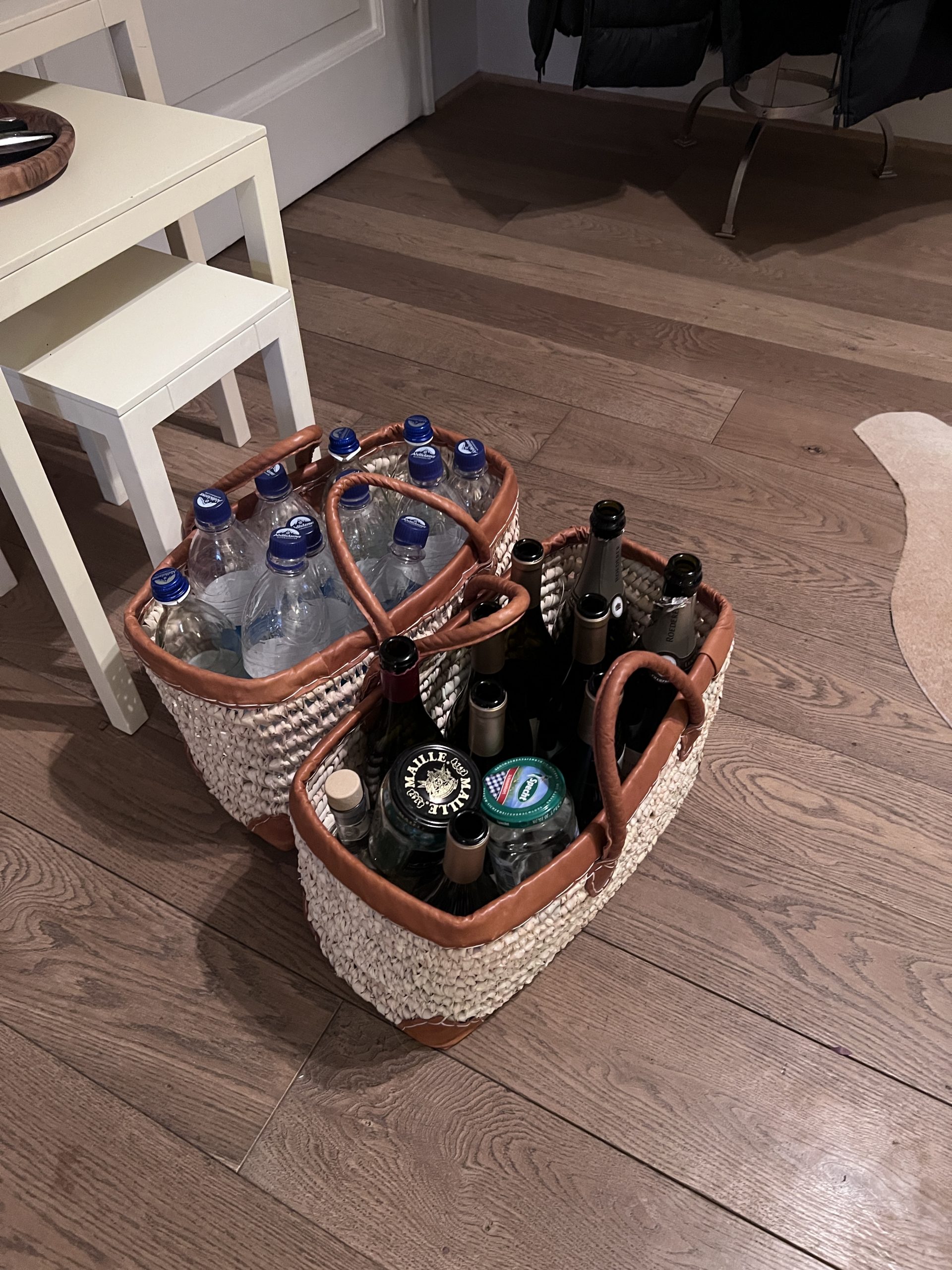 Zwölf Flaschen Wasser und neun Flaschen Wein sind eine gute Mischung für einen Raclette Abend ...