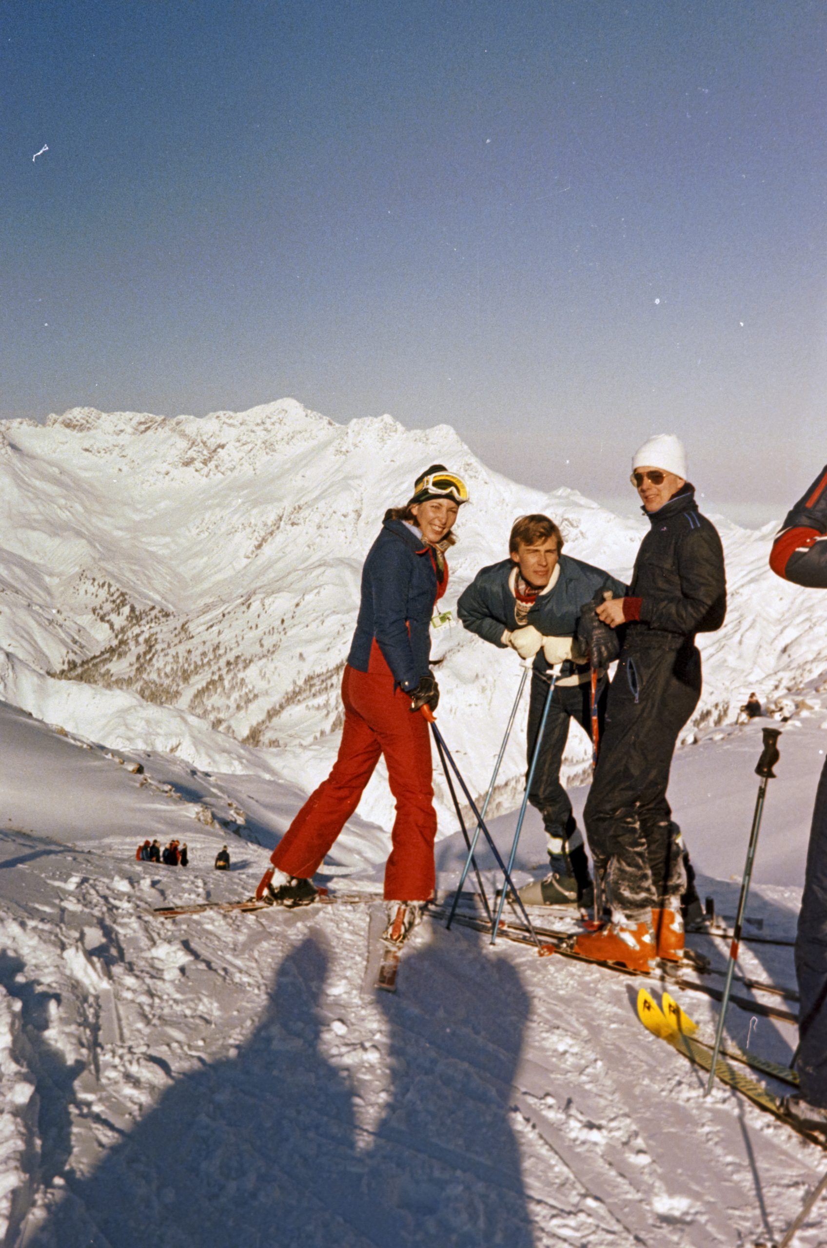 Schwarze Pisten ziehen uns alle magisch an. Ganz links die Tochter von Ilse Wiedemann, mittig Robert Frowein - damaliger BWL Studienfreund aus München, den ich bereits im Jahr 1974 beim Sprachurlaub in England kennengelernt habe und ich selbst mit blauem Overall und weißer Mütze ganz rechts