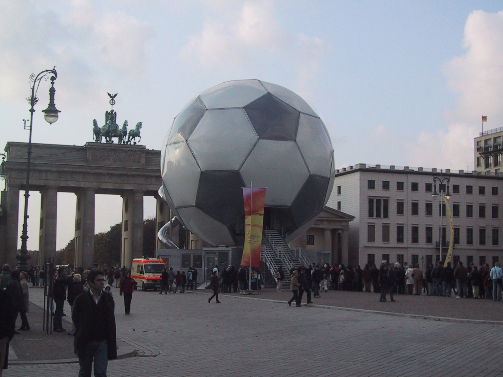 König Fußball wirft schon seinen Schatten voraus! Der FUSSBALL GLOBUS am Pariser Platz vor dem Brandenburger Tor, der im Rahmen der Fußball-Weltmeisterschaft 2006 durch alle zwölf Austragungsorte der WM tourt, macht vom 12. September bis 2. November 2003 in Berlin Station. Im FUSSBALL GLOBUS finden abends regelmäßig Kulturprogramme statt, die zum Besuch einladen! Prominente aus Kultur und Politik aus aller Welt diskutieren und präsentieren verschiedenste Themen rund um den Fußball.