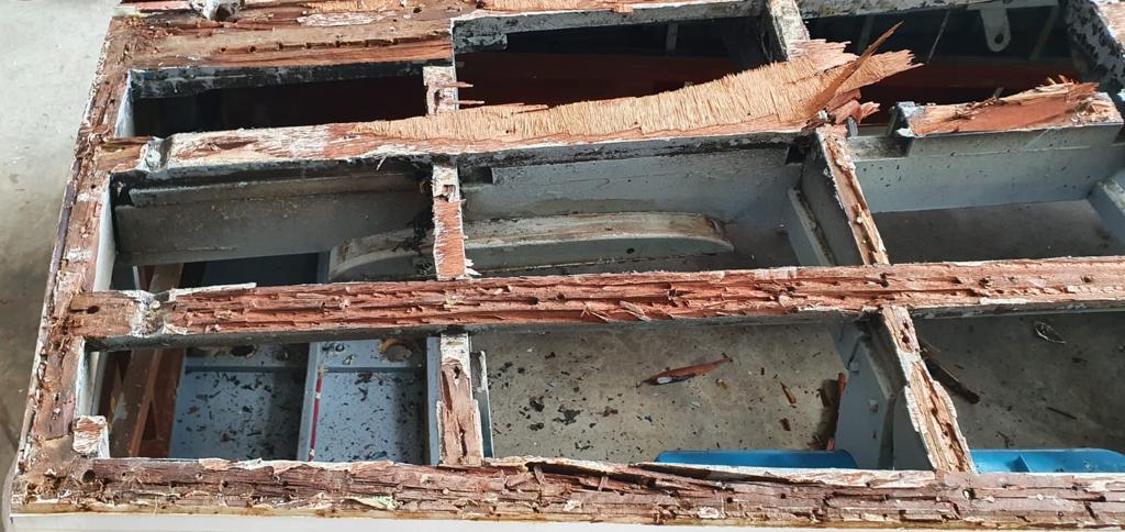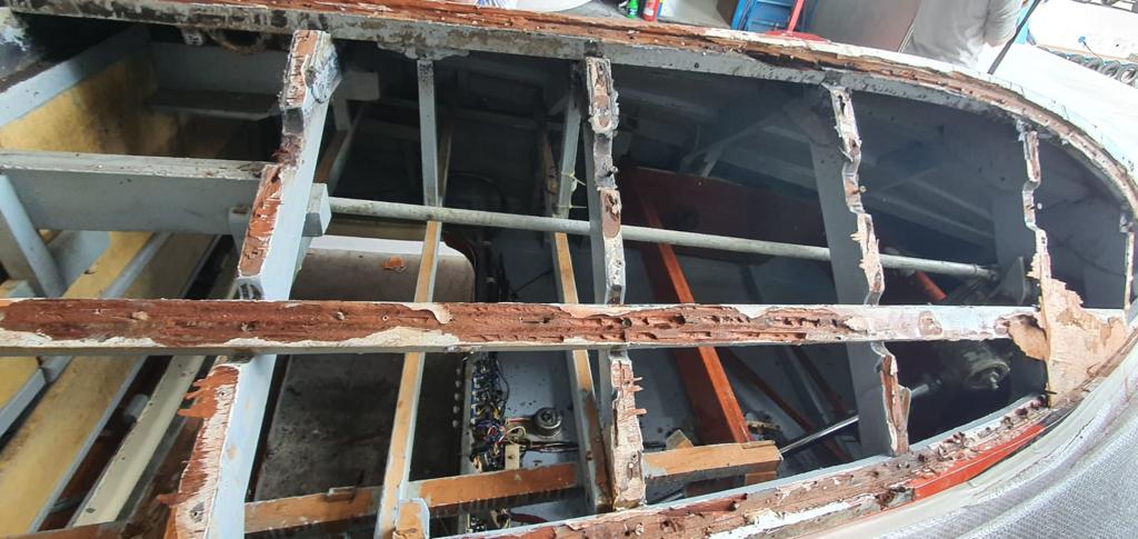 Nach dem Entfernen der Bodenplatten sieht man schnell, in welch schlechtem Zustand die Spanten und Längsstringer sind