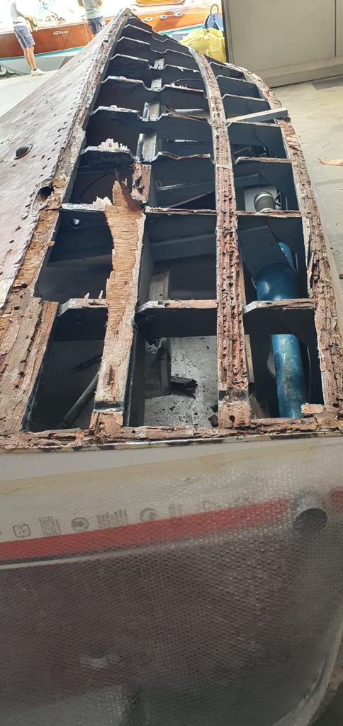 Zum Ende der Saison wird eine Komplett Restauration unserer Riva Super Florida fällig, da die letzte mittlerweile bereits wieder mehr als 10 Jahre her ist. Die Restaurierung von klassischen Motorbooten aus Holz ist ein besonderes Thema. Zwei Dynastien begründeten einst den Mythos sportlicher Motorboote aus Holz: Christopher C. Smith und seine Nachfolger prägten seit Anfang des 20. Jahrhunderts die legendären Chris-Crafts in den USA. In Europa war es Carlo Riva der Bootsbaugeschichte schrieb. In diese, zugegebenermaßen großen, Fußstapfen sind auch einige andere Werft Unternehmer getreten, als sie ihre Werften auf die Restaurierung alter Holzklassiker spezialisiert haben. Wer einen Klassiker besitzt, der möchte den oft beachtlichen Wert erhalten, ohne dabei Kompromisse bei der Alltagstauglichkeit einzugehen. Nicht nur diese beiden Kernbedürfnisse werden im Centro Nautico von Alberto Arcangeli erfüllt: Nur wer sein Handwerk versteht, kann ein wirklich fairer Partner sein. Es gehört eine Menge Sachverstand und Erfahrung dazu, den Zustand eines Holzbootes richtig einschätzen zu können. Man muss die alten Konstruktionsprinzipien verstanden haben, aber auch die Möglichkeiten und Grenzen der eingesetzten Materialen genau kennen. Bei der Restauration von Motorboot-Klassikern geht es um Werterhalt. Der finanzielle Wert ist dabei nur einer von vielen, denn es geht auch um die Seele eines Bootes. Genauso wichtig sind Stilsicherheit, Alltagstauglichkeit und Beständigkeit. Dafür braucht es viel Erfahrung und einen Sinn für kreative und pragmatische Lösungen, falls etwa ein Originalteil nicht mehr aufzutreiben ist. Ein Motorboot aus Vollholz ist eine komplexe Konstruktion, mit der man sich beschäftigen muss. Albertos Mitarbeiter kennen die einschlägigen Schwachstellen und wissen, wie man sie angeht, ohne Schaden anzurichten. Dazu sollte man auch intimer Kenner der Geheimnisse des Werkstoffs Holz sein. Oft kommt es auf Kleinigkeiten an. Keine zwei Stämme derselben Holzart gleichen einander. Wer sich hier gut auskennt, dem bleibt manche Überraschung erspart. Zunächst ist die Struktur des Bootes an der Reihe. Ist diese wieder einwandfrei, kümmert sich das Team mit der gleichen Leidenschaft um das Finish. Schließlich fährt man einen Klassiker nicht zuletzt wegen seiner Ausstrahlung. Staunende Blicke sind durch hochglanzpolierte Oberflächen, blinkendem Chrom und hochwertigen Sattlerarbeiten garantiert. Ob Purist oder Pragmatiker, Alberto findet für jeden Eigner die passende Lösung. Dabei versucht er immer die Originalität des Bootes und die aktuellen Anforderungen miteinander zu versöhnen. Seine Mitarbeiter sind zwar keine Zauberer, aber ihre Leidenschaft, gepaart mit handwerklichem Können und kompromisslosen Qualitätsverständnis, sorgen oft für verblüffende Ergebnisse.