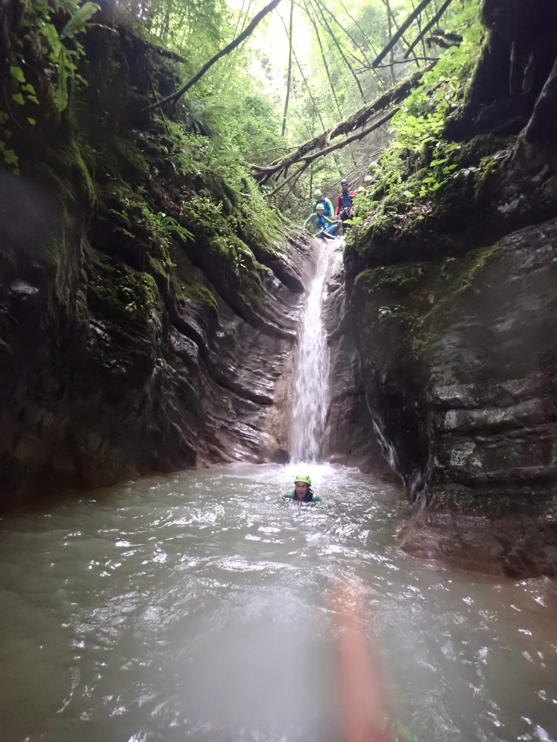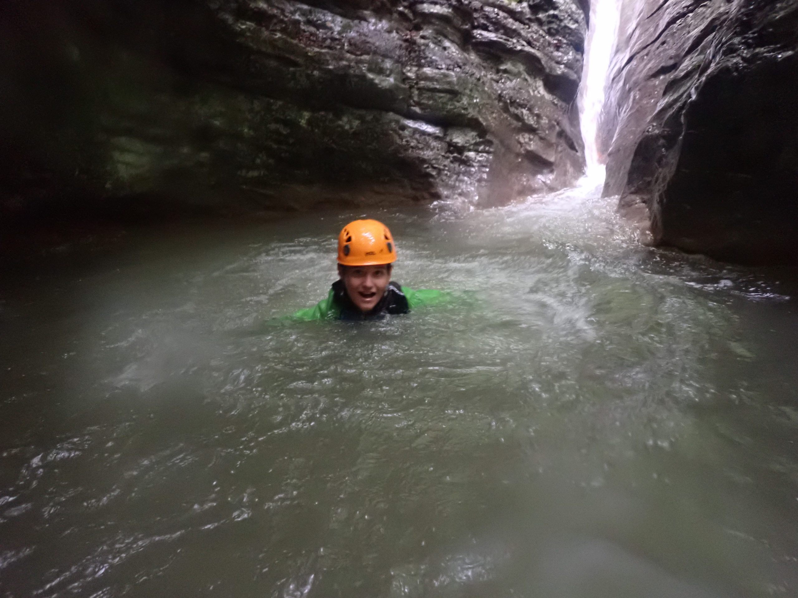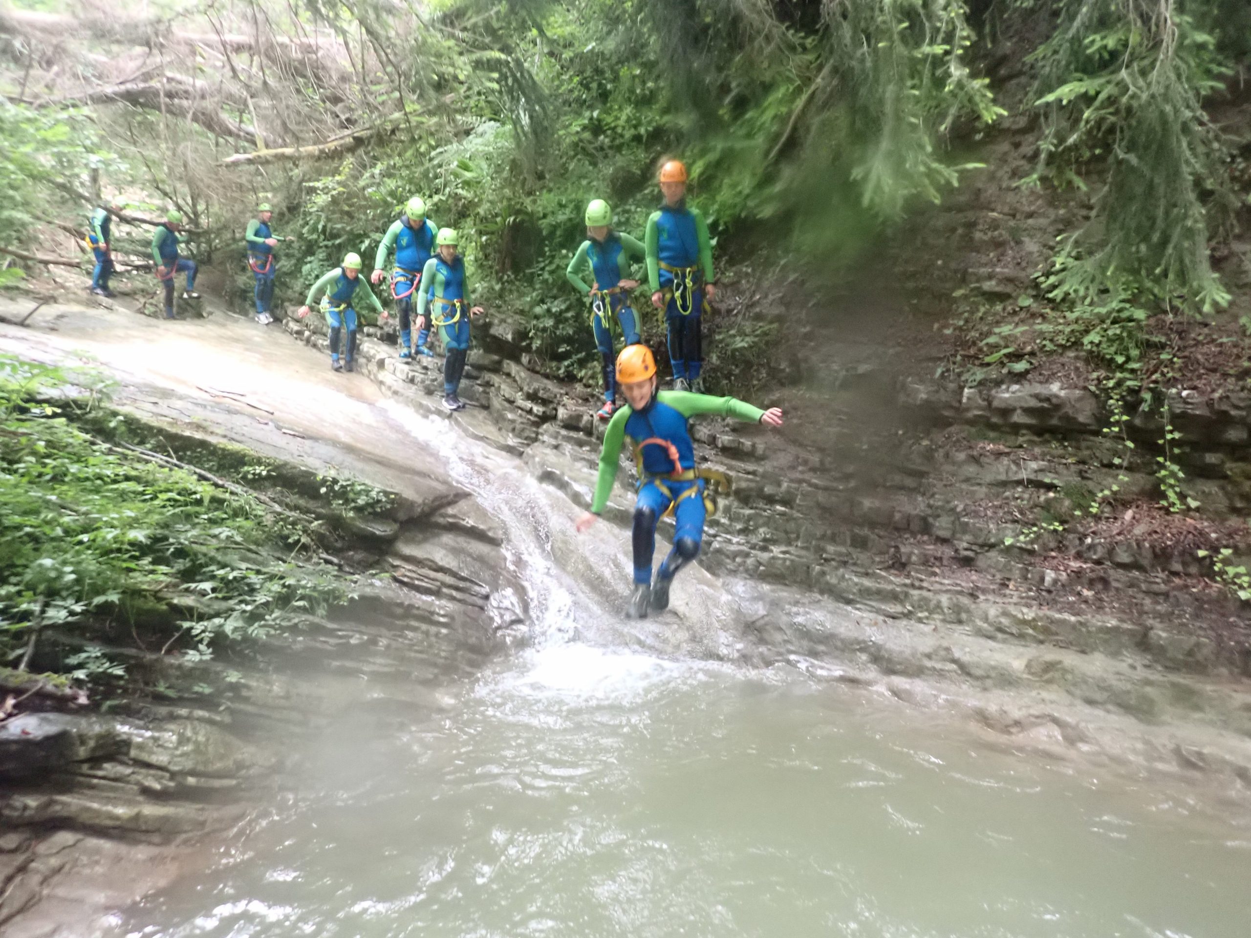 Der finale Rutscher auf unserer schönen Tour .... hier werden wir alle noch einmal richtig schnell und rauschen mit einem letzten dicken Platscher in die grosse und tiefe Gumpe