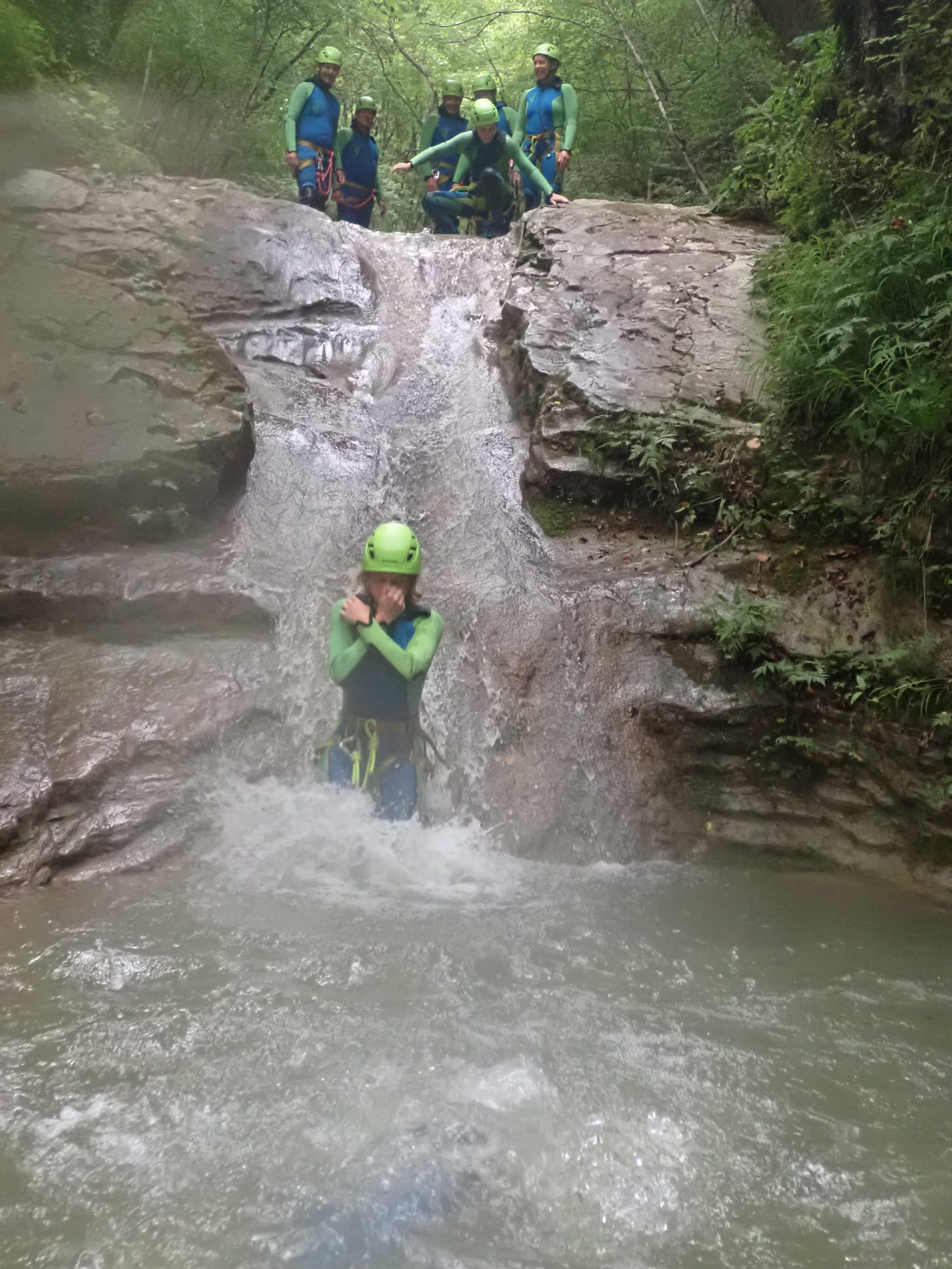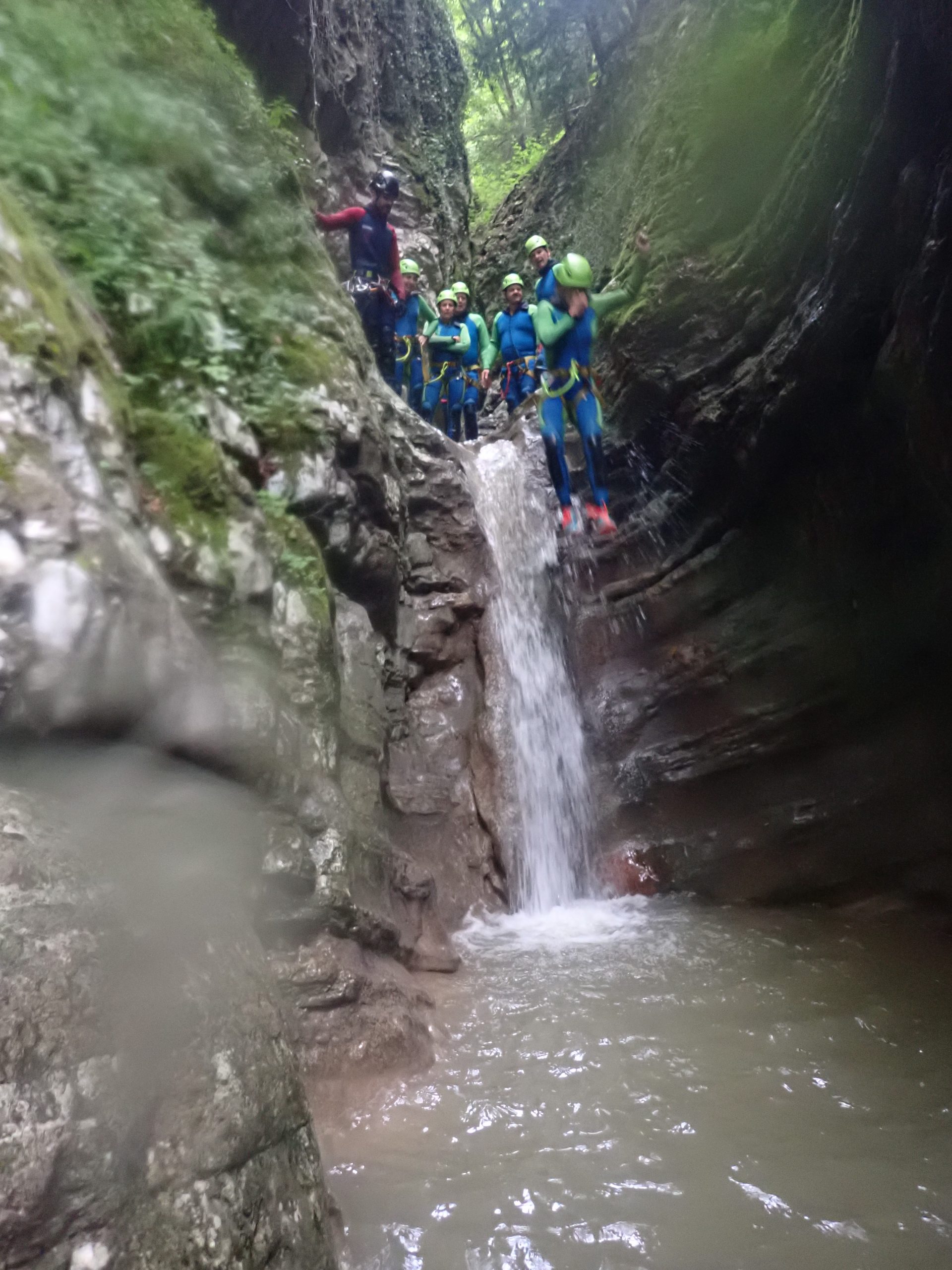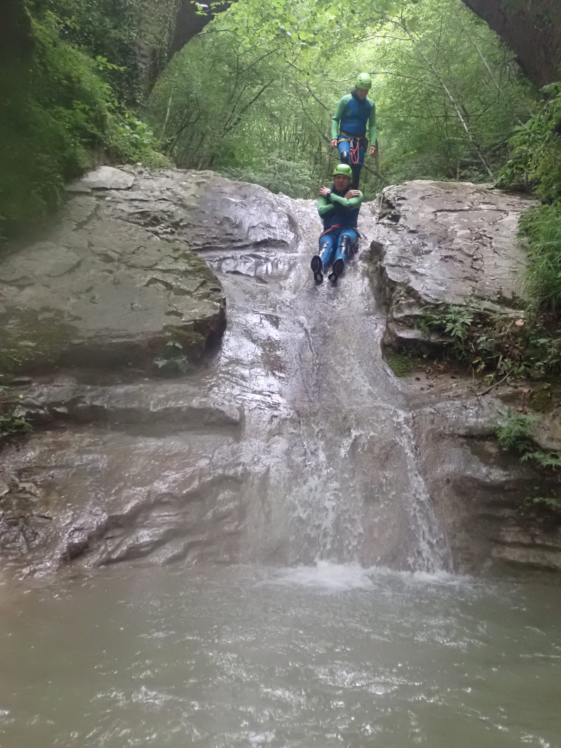 Der finale Rutscher auf unserer schönen Tour .... hier werden wir alle noch einmal richtig schnell und rauschen mit einem letzten dicken Platscher in die grosse und tiefe Gumpe