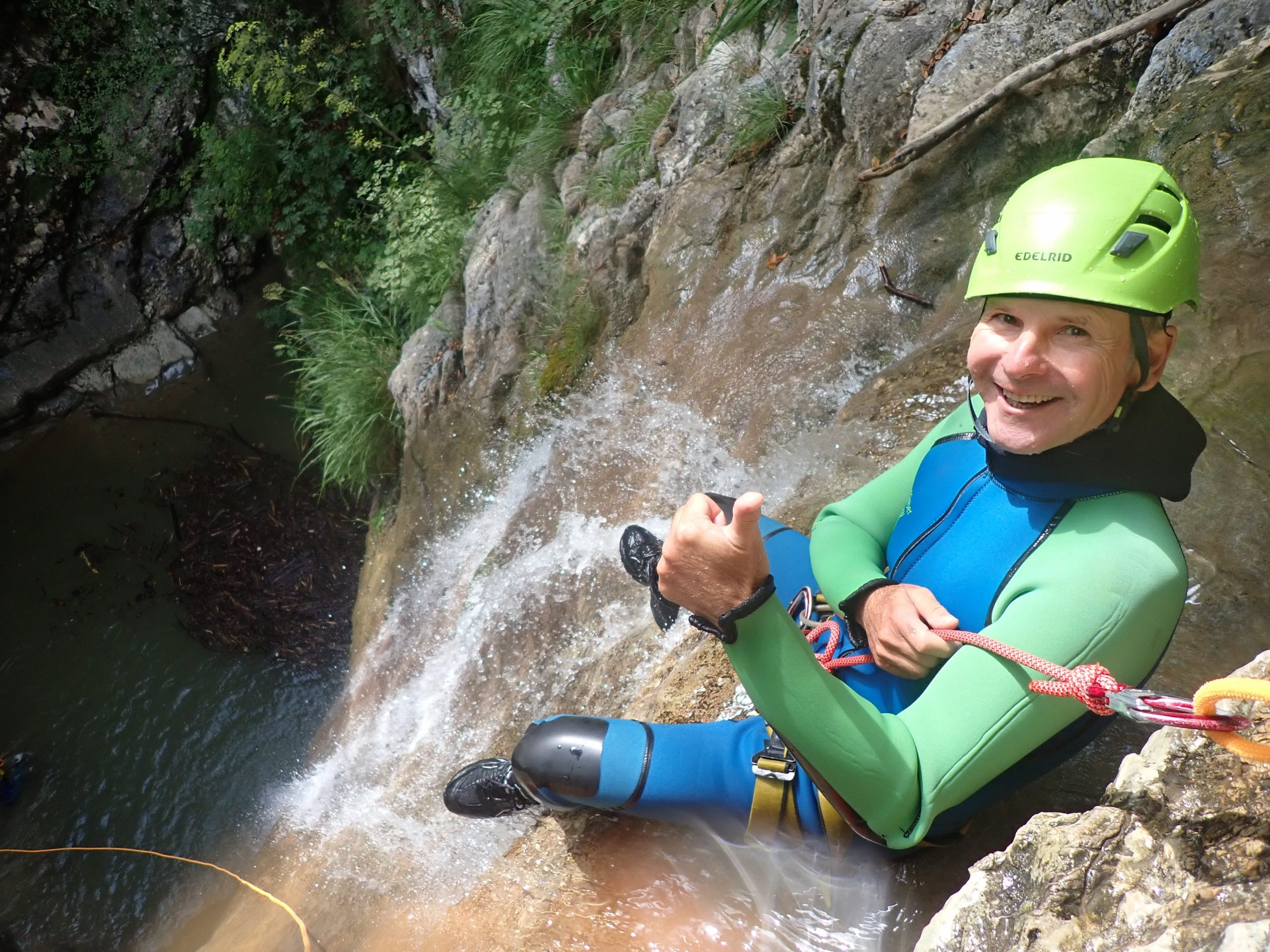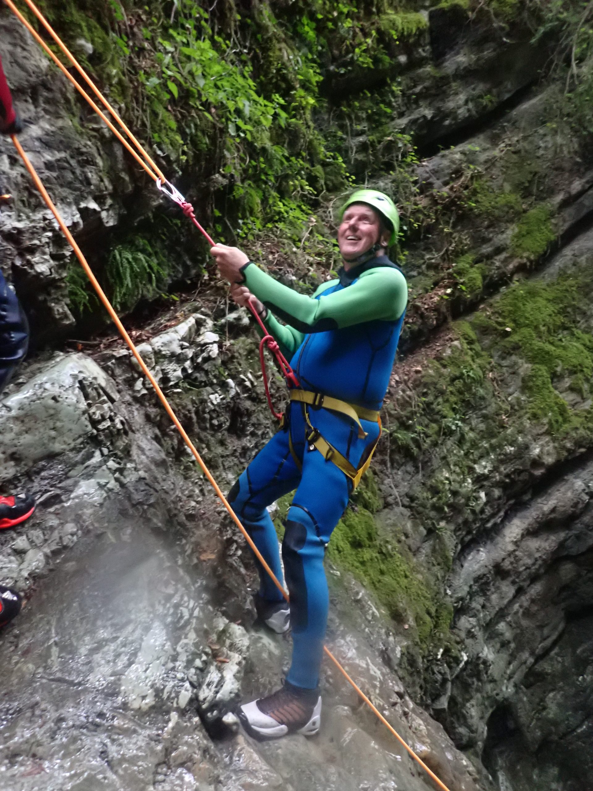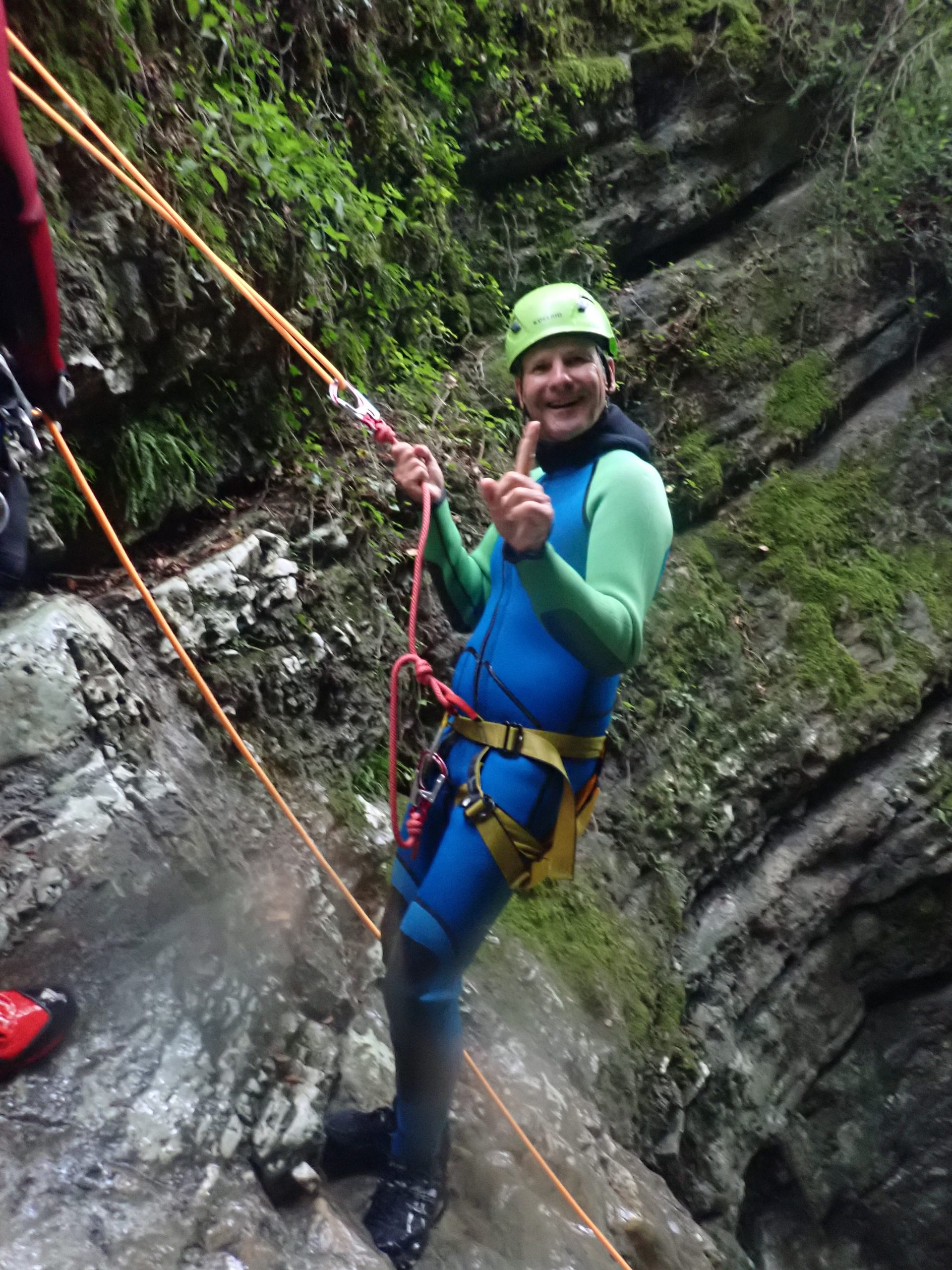 Das nette Photo war Werners Idee ... kurz vor dem Abseiler wollte er noch mal dokumentieren, dass die Tour auch durch Übergewichtige zu meistern ist 😁