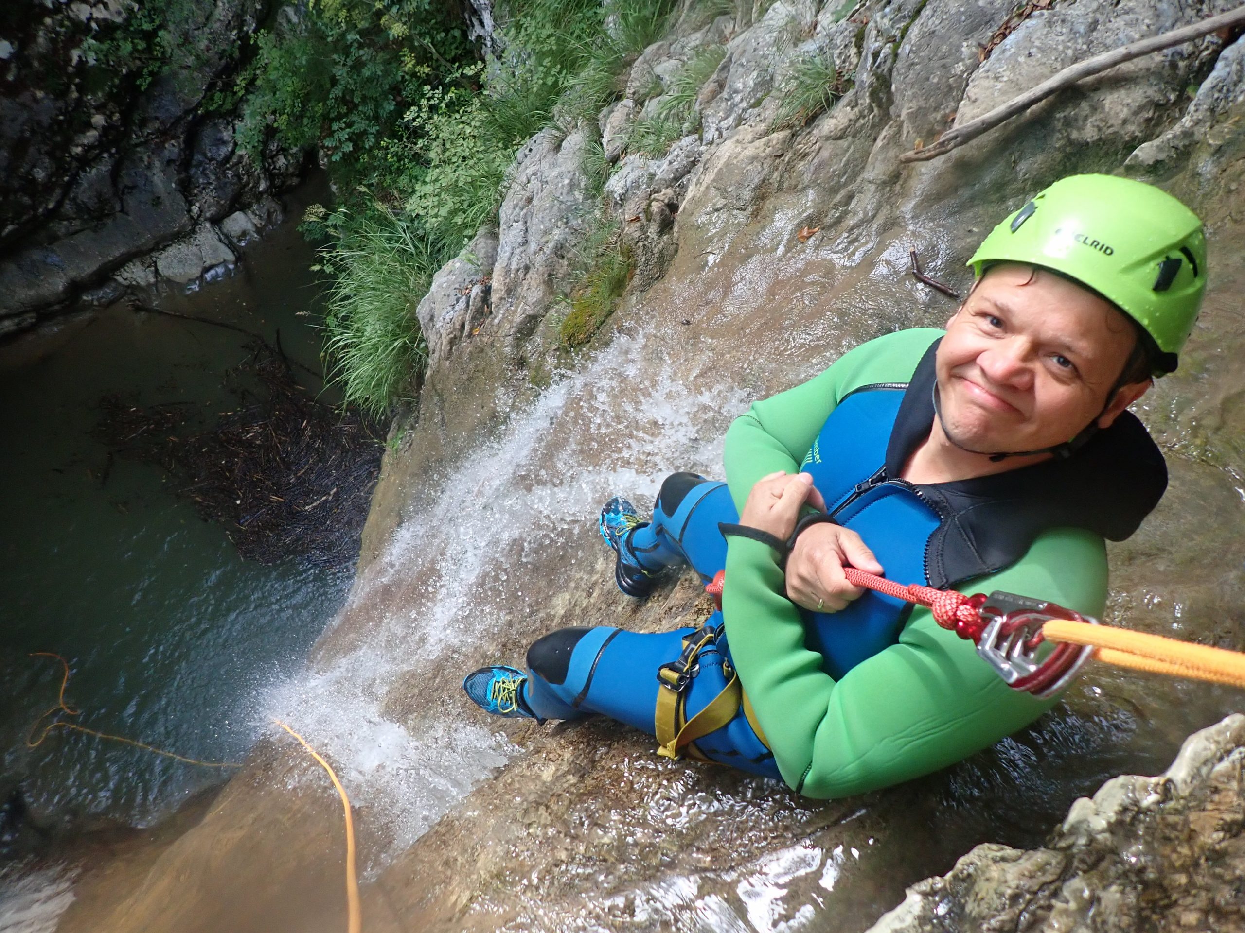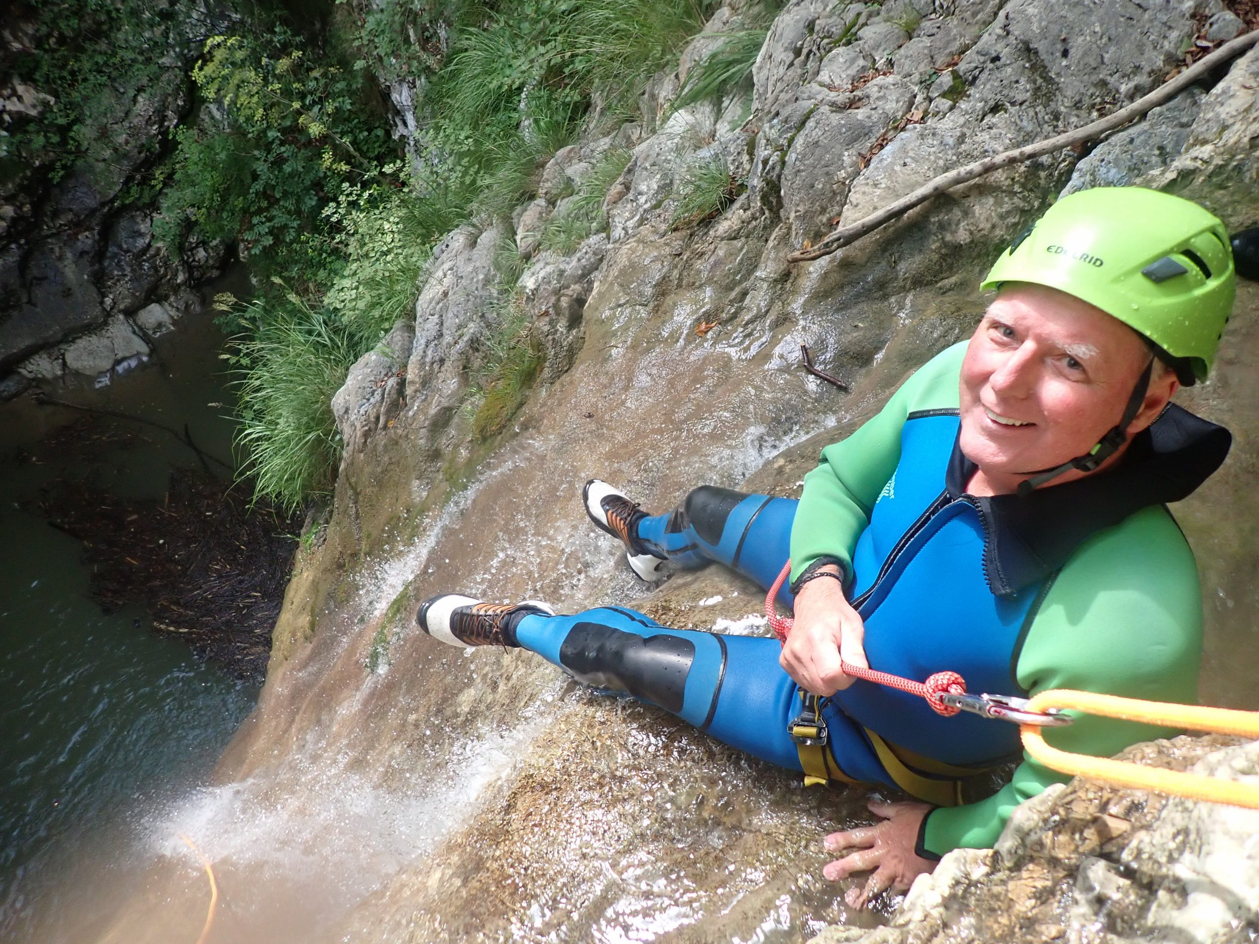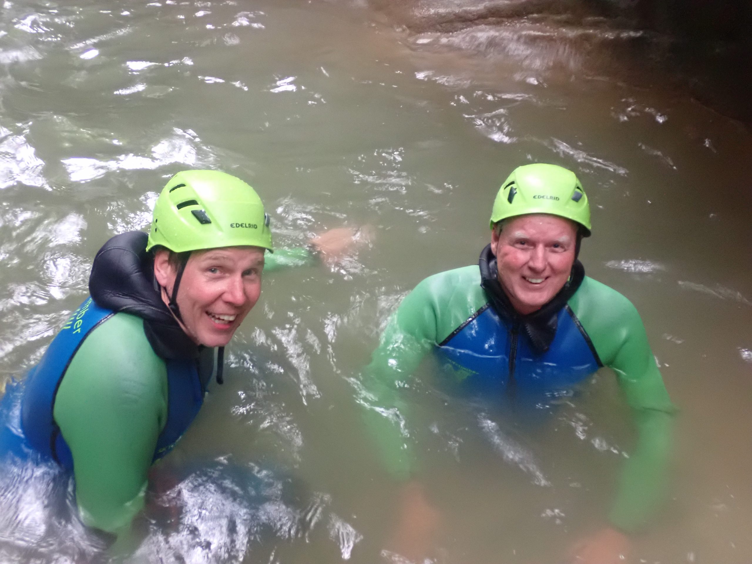 Das nette Photo war Werners Idee ... kurz vor dem Abseiler wollte er noch mal dokumentieren, dass die Tour auch durch Übergewichtige zu meistern ist 😁