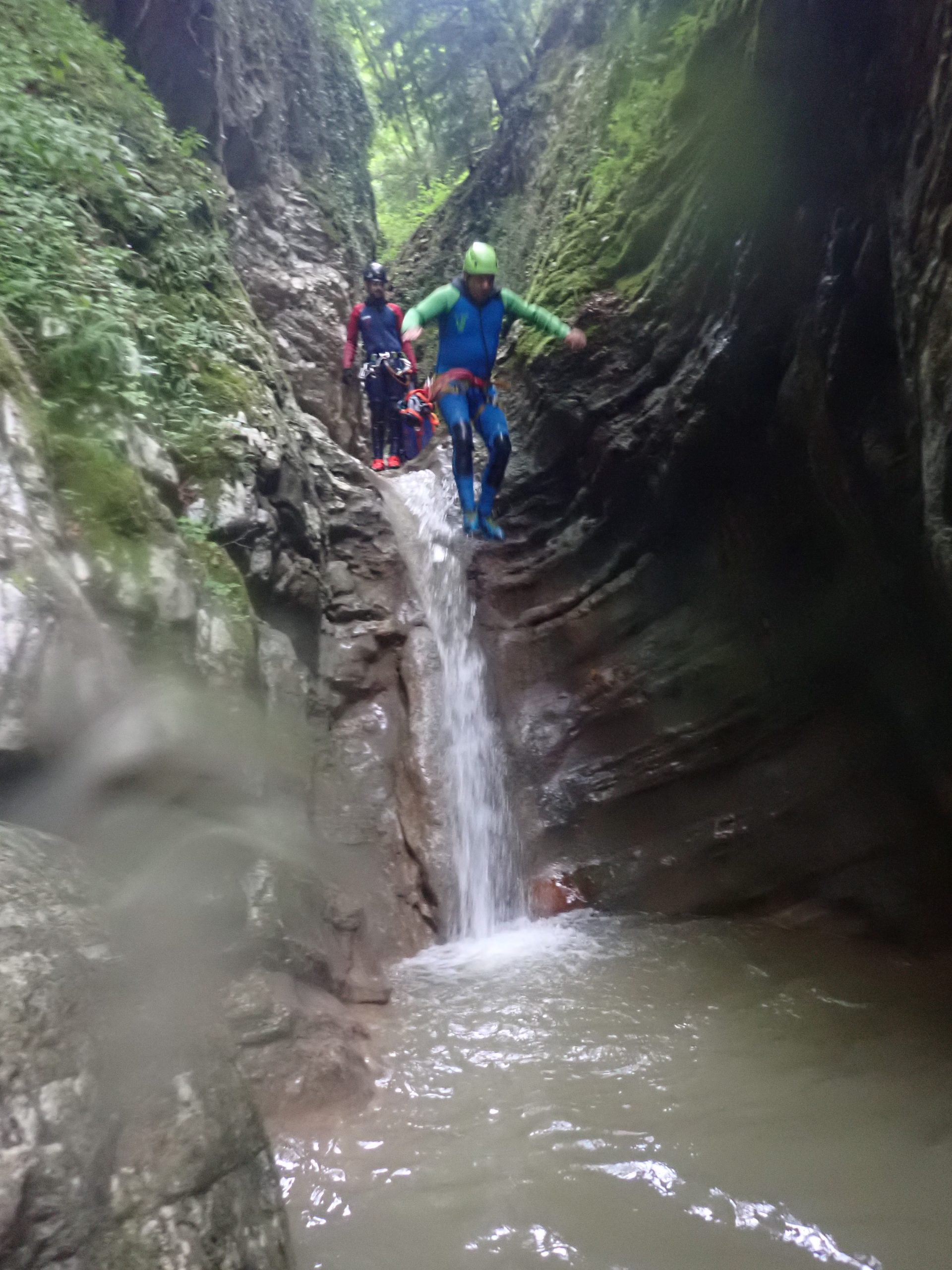 .... bevor es am nächsten Hindernis mit einem gewagten Sprung aus knapp 6 Meter Höhe genau in die Mitte der Gumpe gehen musste, um keine Felsen links oder rechts zu erwischen