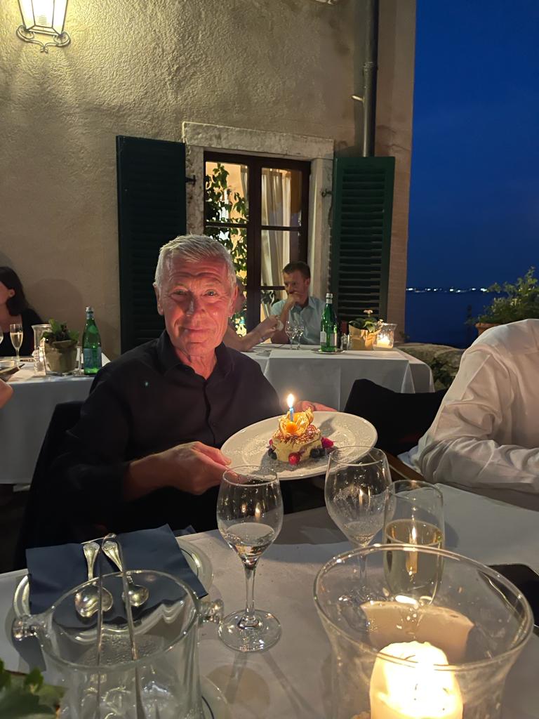 Tanti Auguri ... zum Happy Birthday Gesang aller Gäste erhält Karl auch noch einen Geburtstagskuchen
