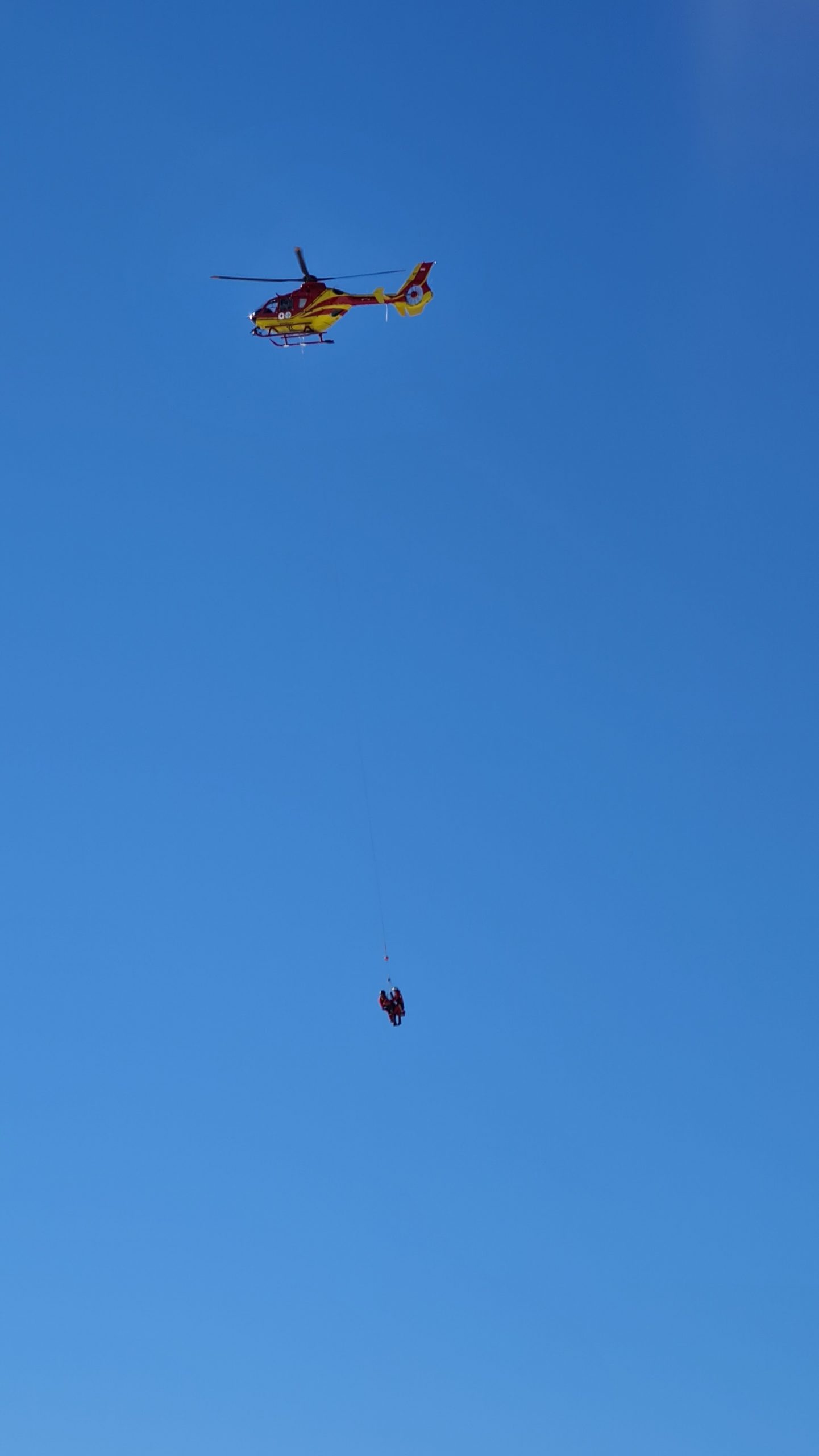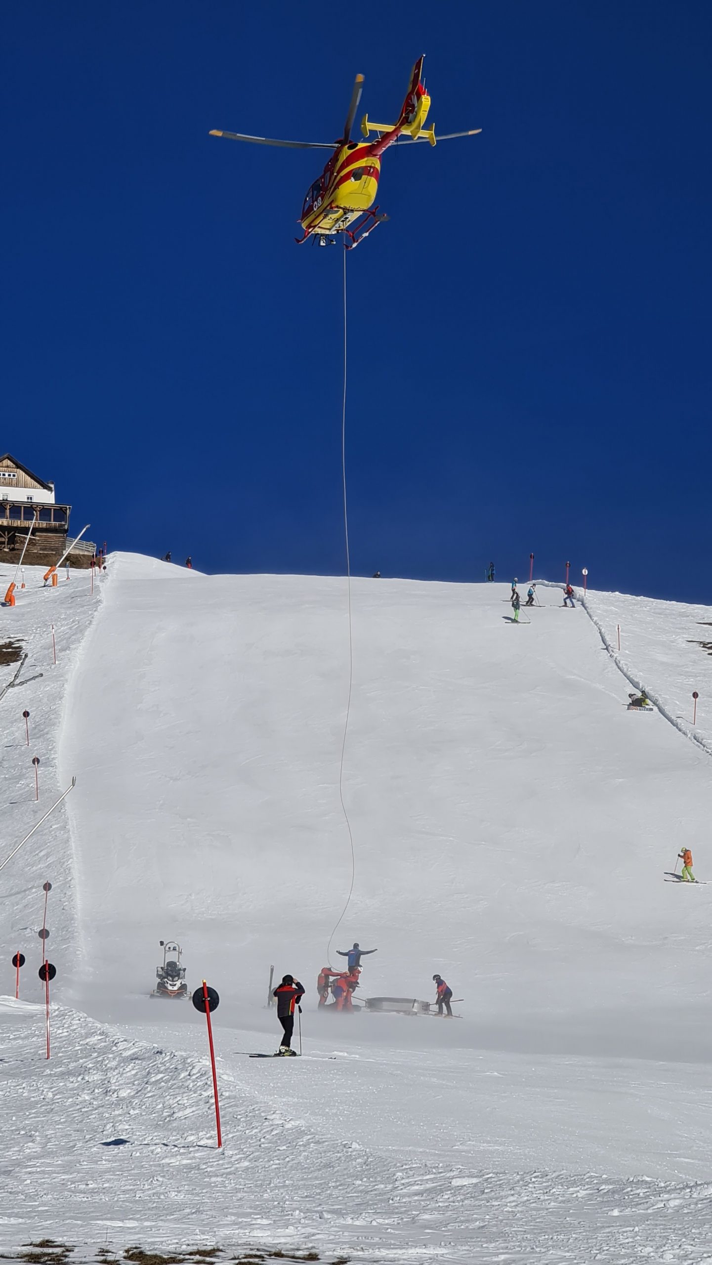 Wie bei der Fernsehserie "Die Bergretter" sehen wir einen Helicoptereinsatz im Hang unterhalb des Gipfels der Hohen Salve. Nachdem eine Rettung mit dem Akia wohl nicht möglich war, durften wir einen spektakulären Flugeinsatz mit Arzt, Betreuer und Patient zu Dritt an einem langen Seil unter dem Heli beobachten