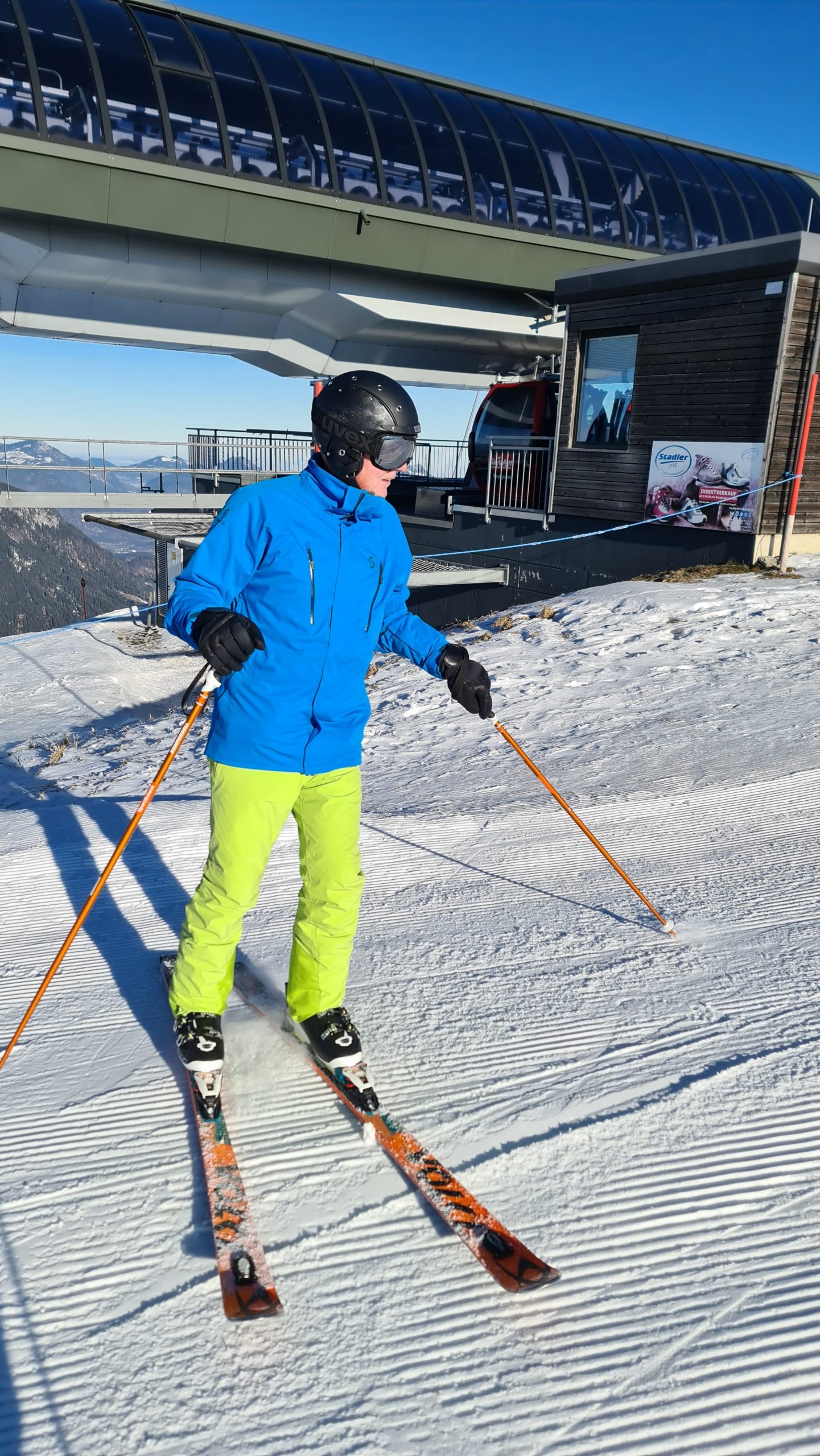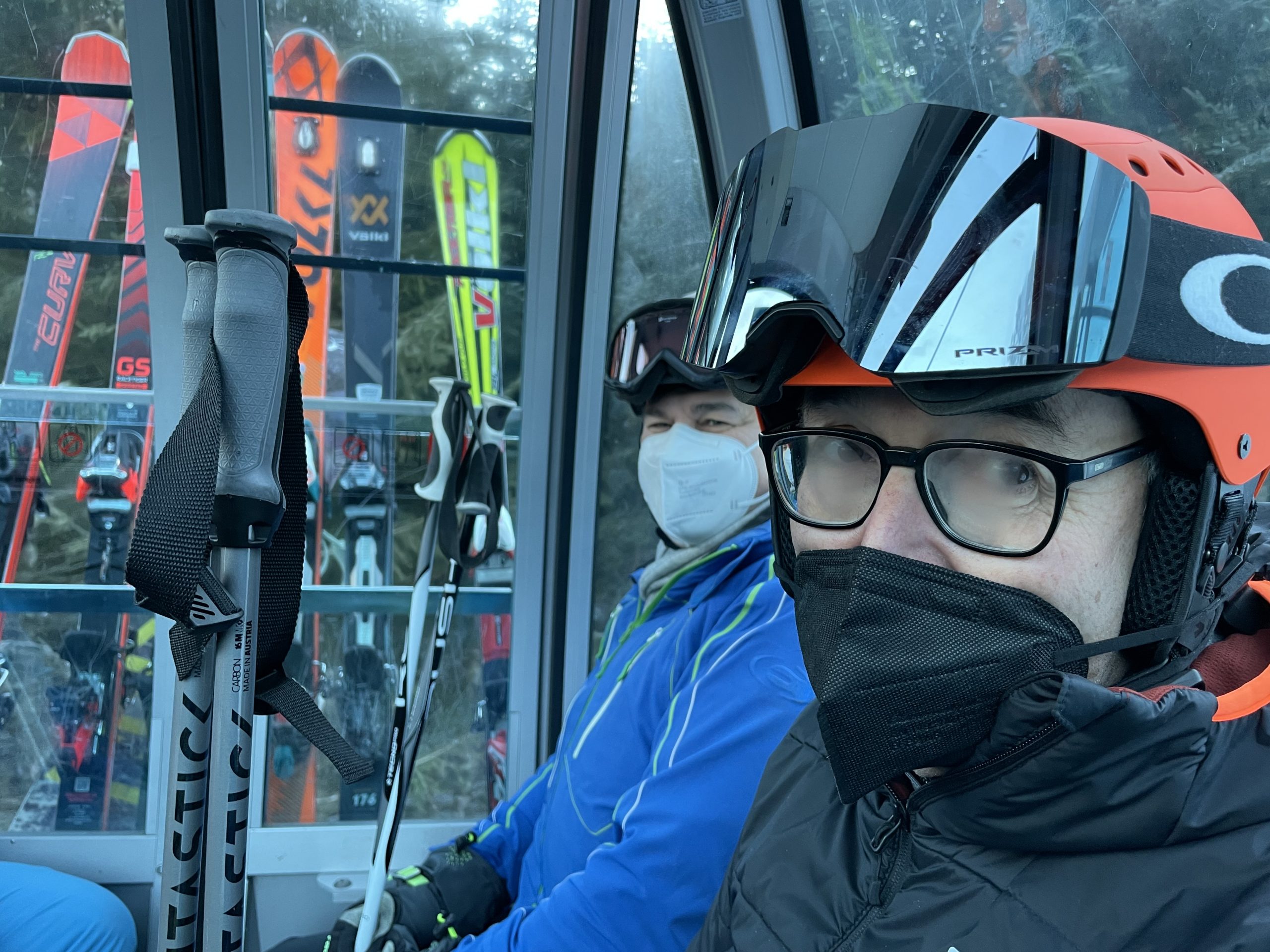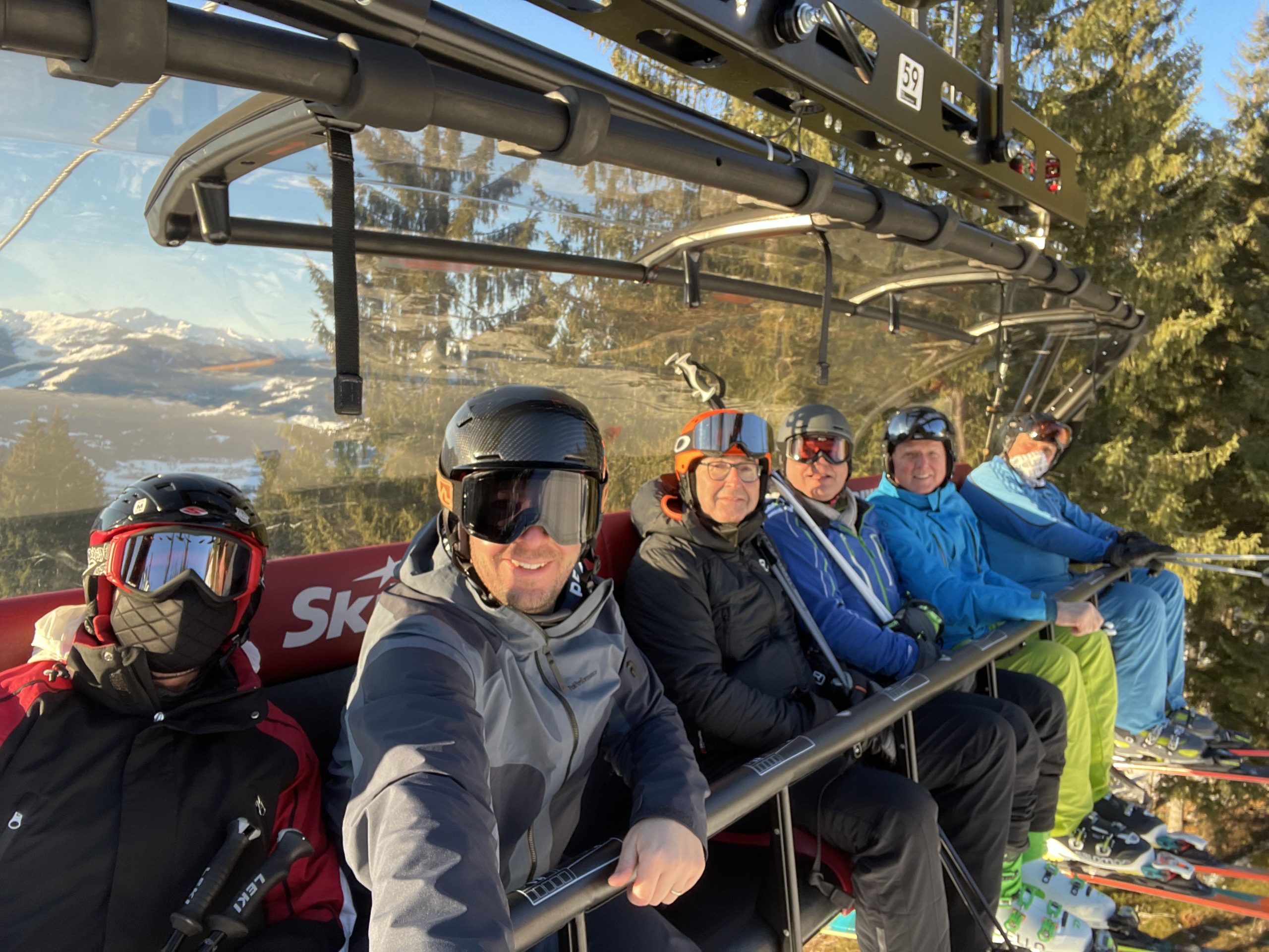 Selfie immer am Mann ... im Sessellift bewährt sich der professionelle lange Arm von Max