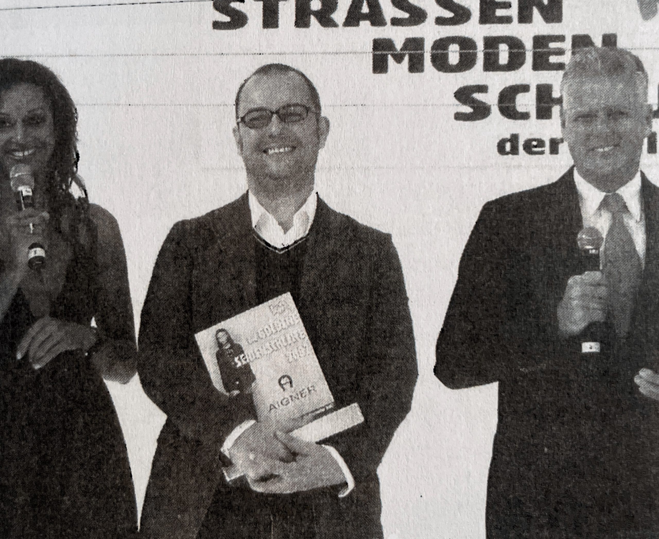 Vom Bambi zur lokalen Strassenmodenschau "Krefelder Seidenschleife" war es natürlich ein Spannungsbogen. Unser Design-Chef Johann Stockhammer freute sich trotzdem mit uns. Heute ist er Dekan an der renommierten Fachhochschule für Gestaltung in Pforzheim und gibt sein Wissen an die Millenials weiter